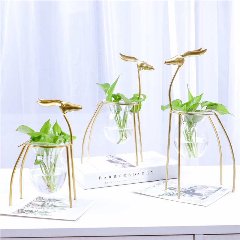 极速水培绿萝透明玻璃花瓶创H意铁艺小清新家居客V厅餐桌插花装饰