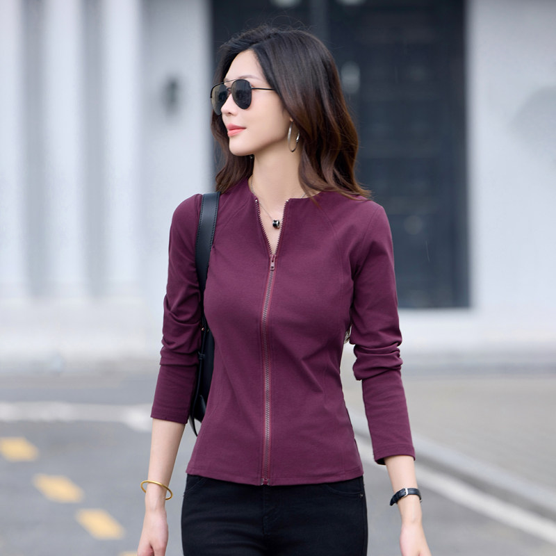拉链开衫纯棉长袖t恤女打底衫