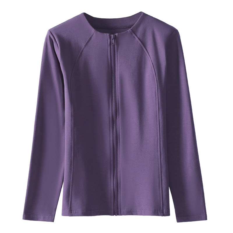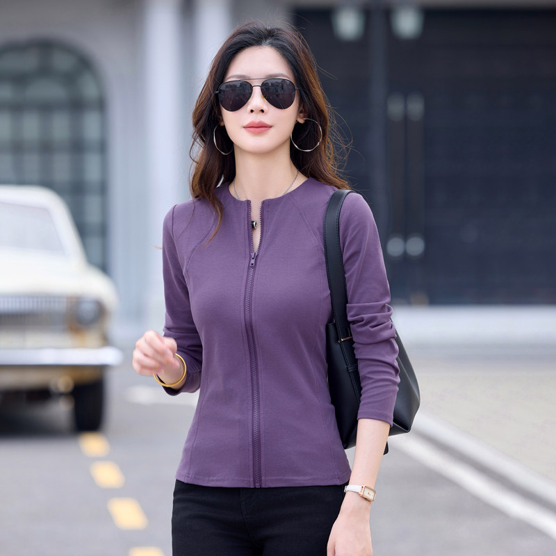 开衫拉链纯棉长袖t恤女大码修身显瘦内搭老人秋衣中年妈妈打底衫