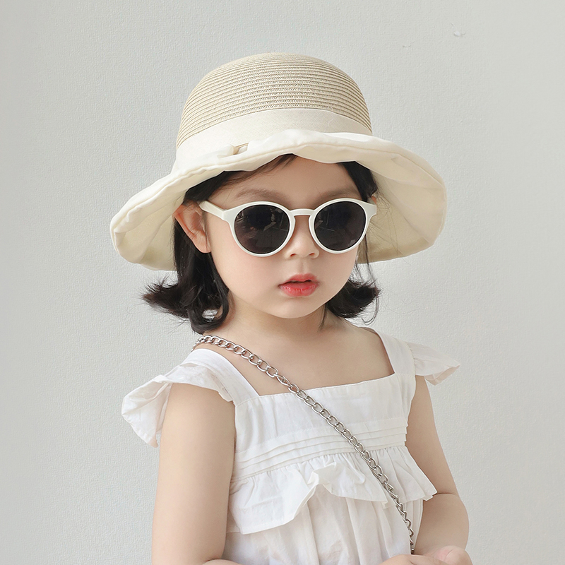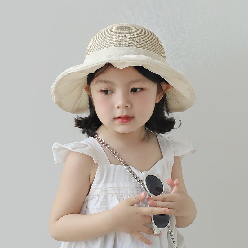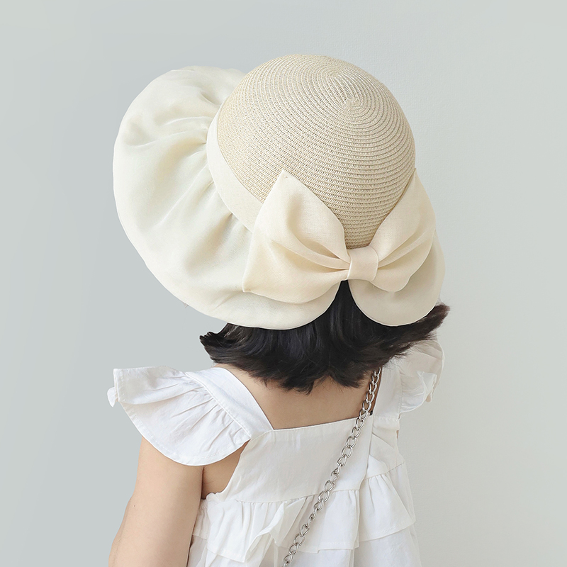 婴儿帽子夏季遮阳帽大帽檐宝宝蝴蝶结草帽蕾丝花边女童防晒太阳帽