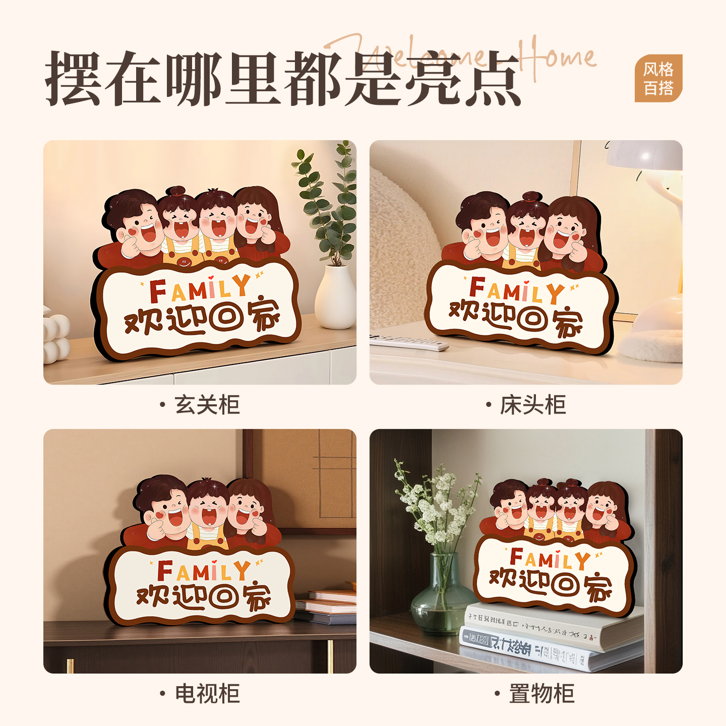 欢迎回家一家三口四口卡通人物摆件入户进门口玄关鞋柜电视柜装饰