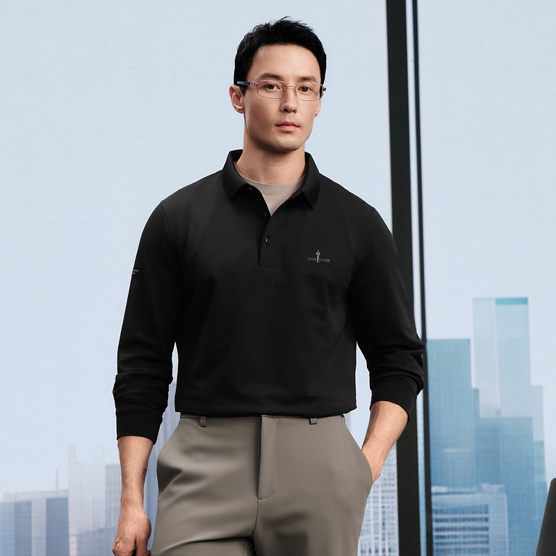 【得体舒适】比音勒芬2025秋季新款男士轻商务翻领T恤长袖POLO衫