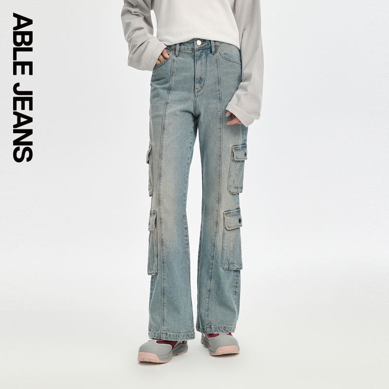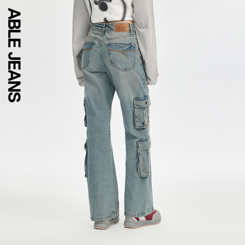 ABLE JEANS【琵琶裤】新款女士工装高腰直筒微喇叭牛仔裤宽松