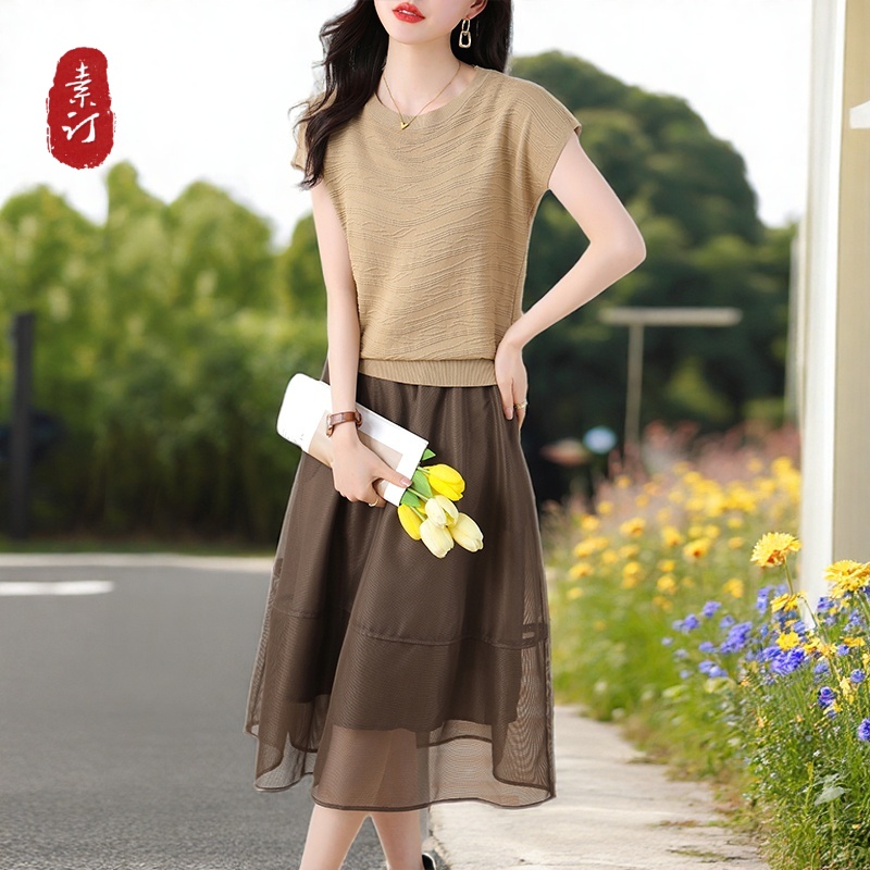 素订蚕素木品牌女装旗舰店高级感时尚气质套装蓬蓬半身裙两件套潮