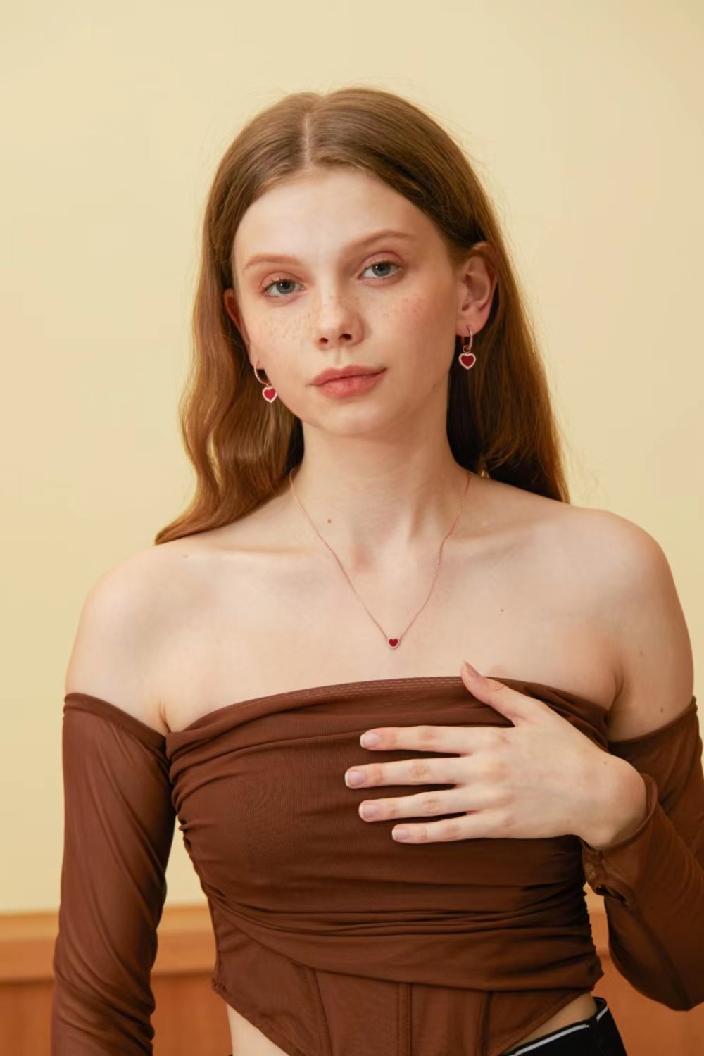 apmMONACO女生红色爱心项链耳环