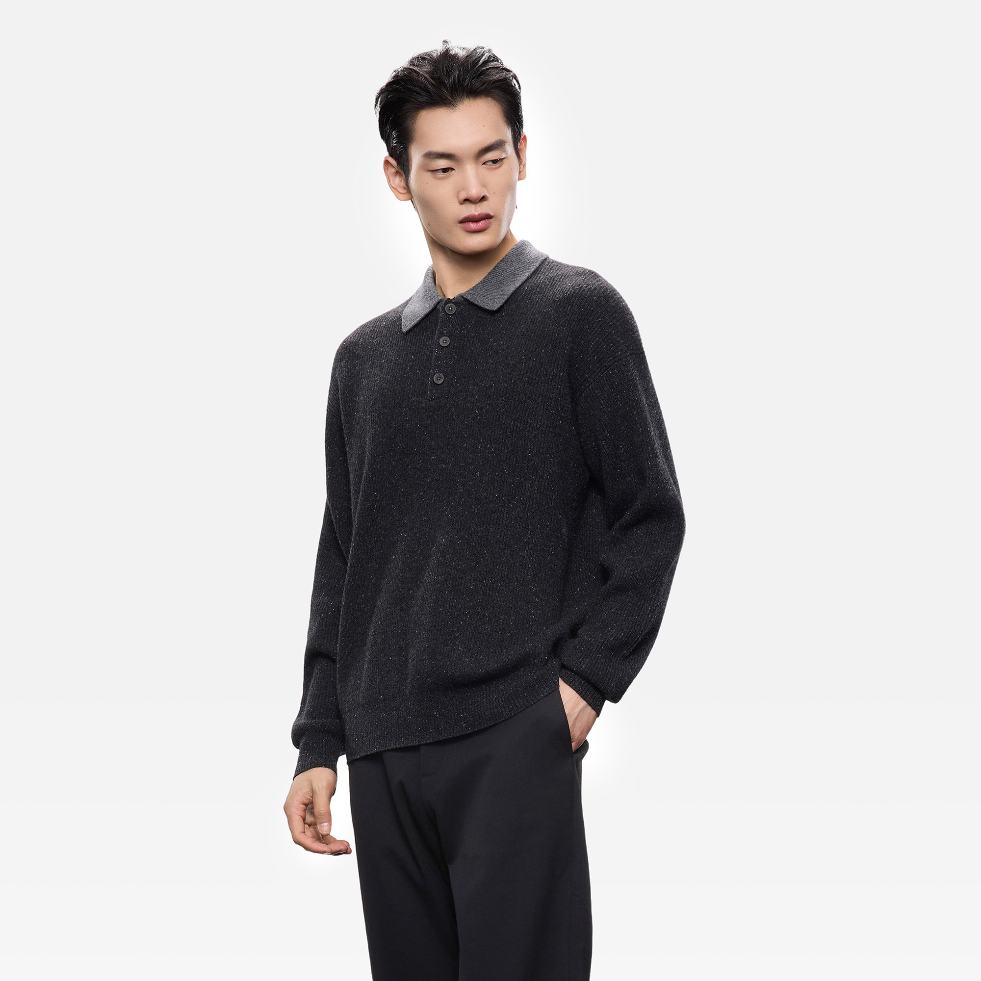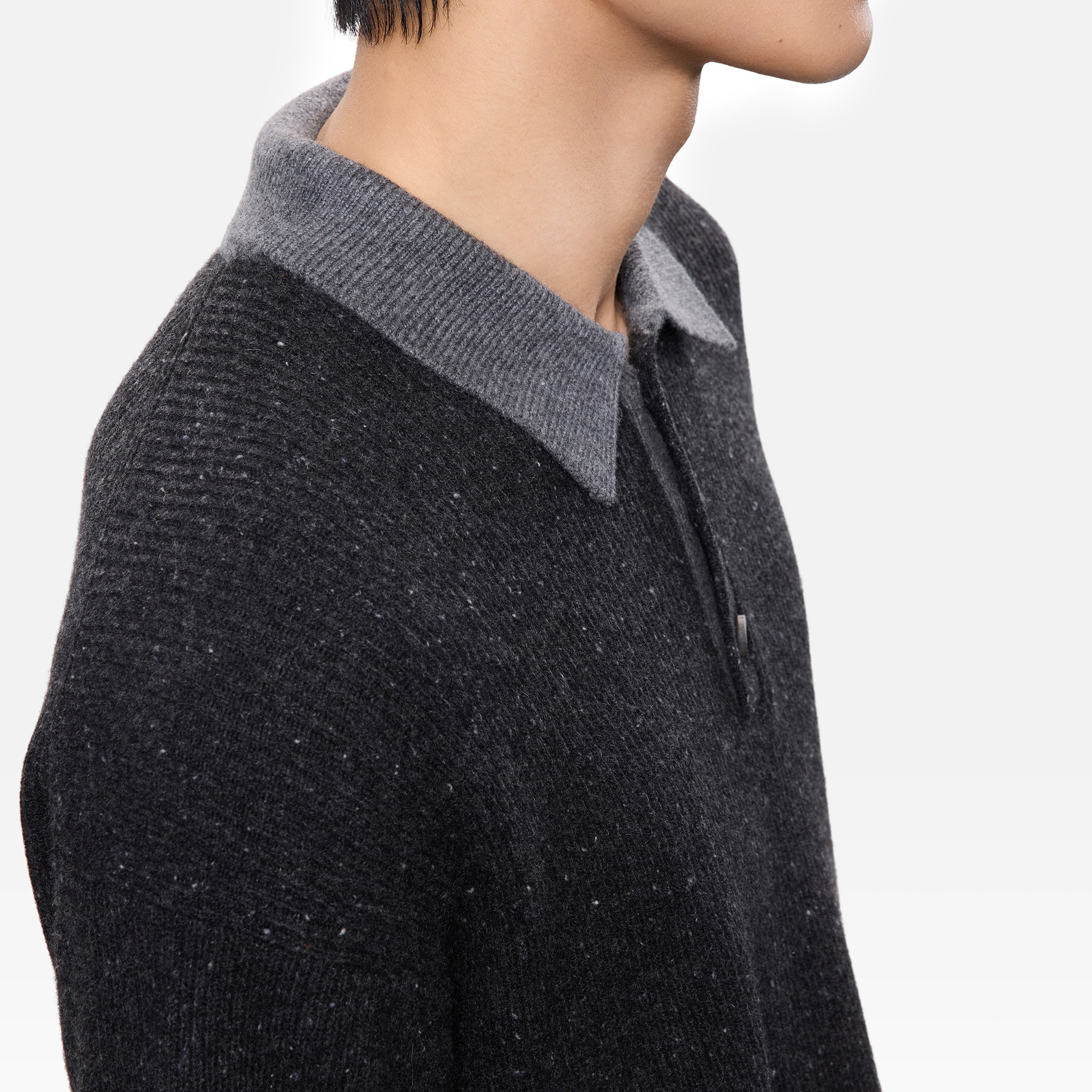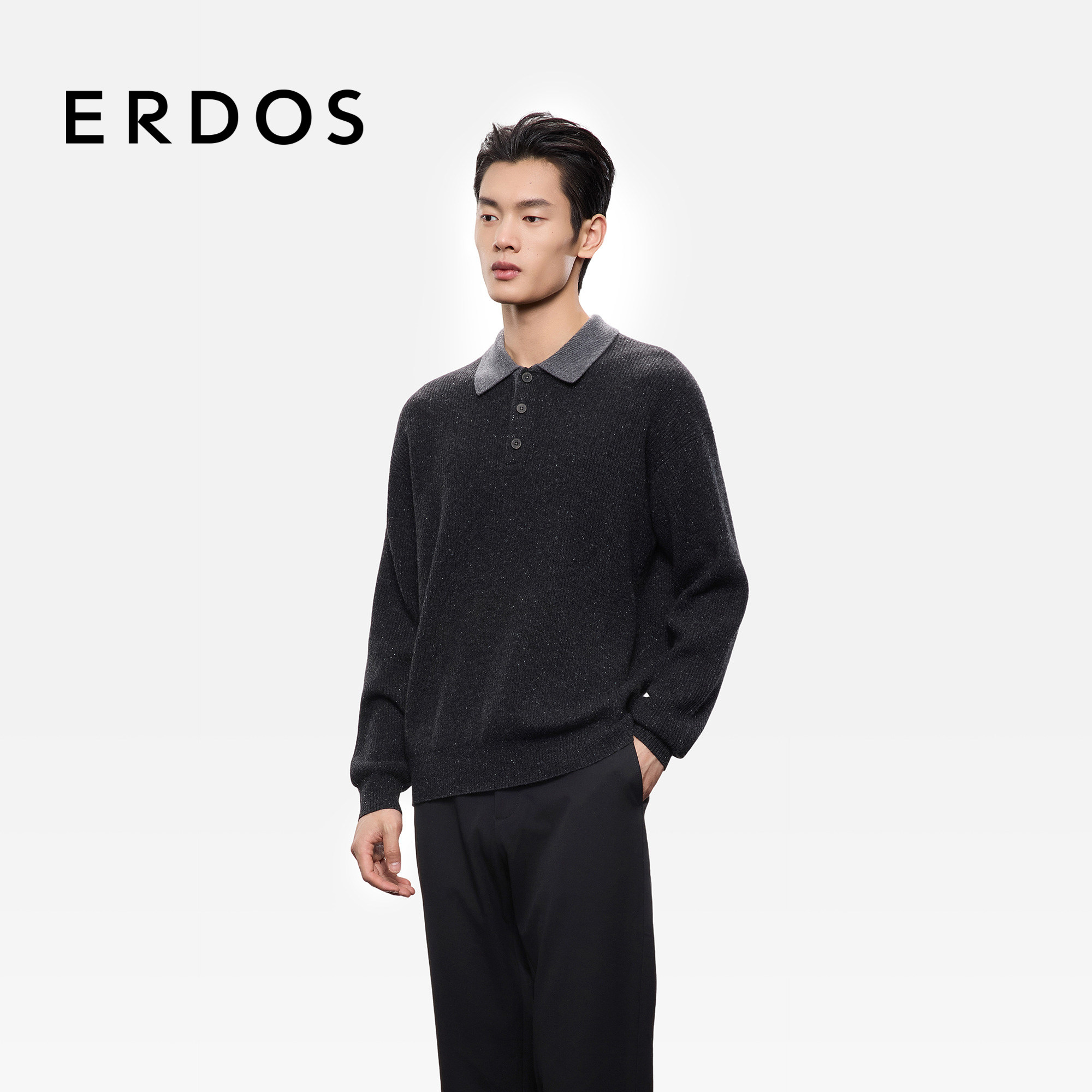 ERDOS 男装撞色小翻领双畦羊绒衫25年秋冬新品厚款商务休闲针织衫