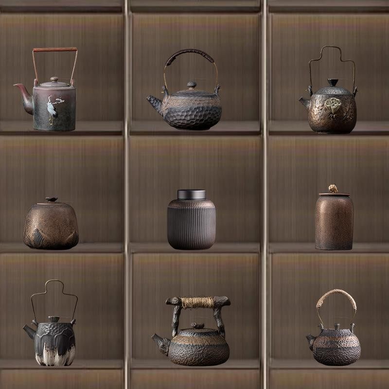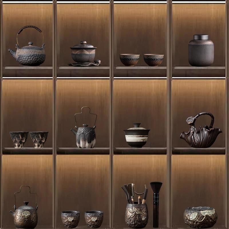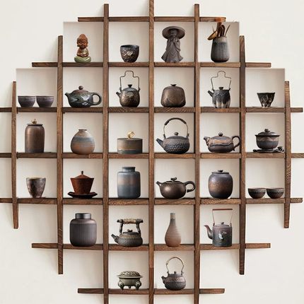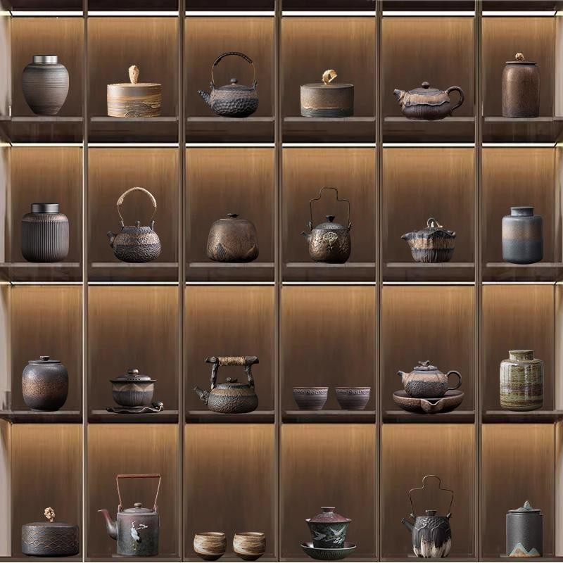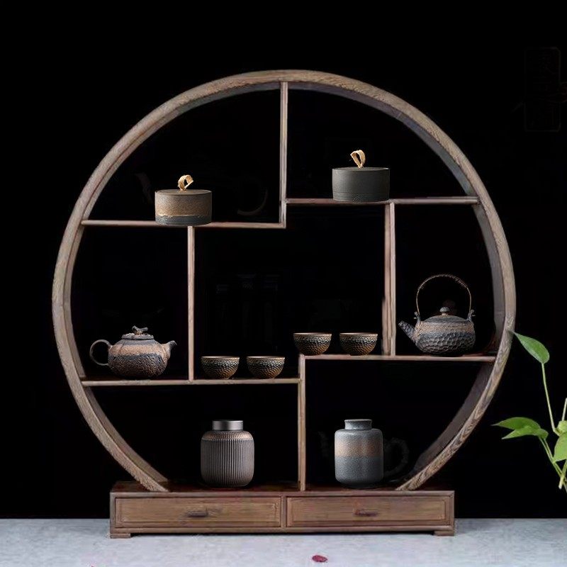 中式茶室茶架博古架装饰家居禅意复古怀旧茶壶茶叶罐茶杯套装摆件
