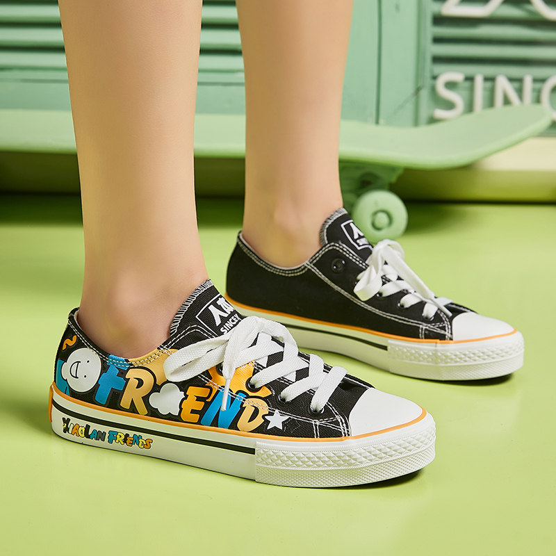 人本低帮圆头休闲涂鸦帆布鞋