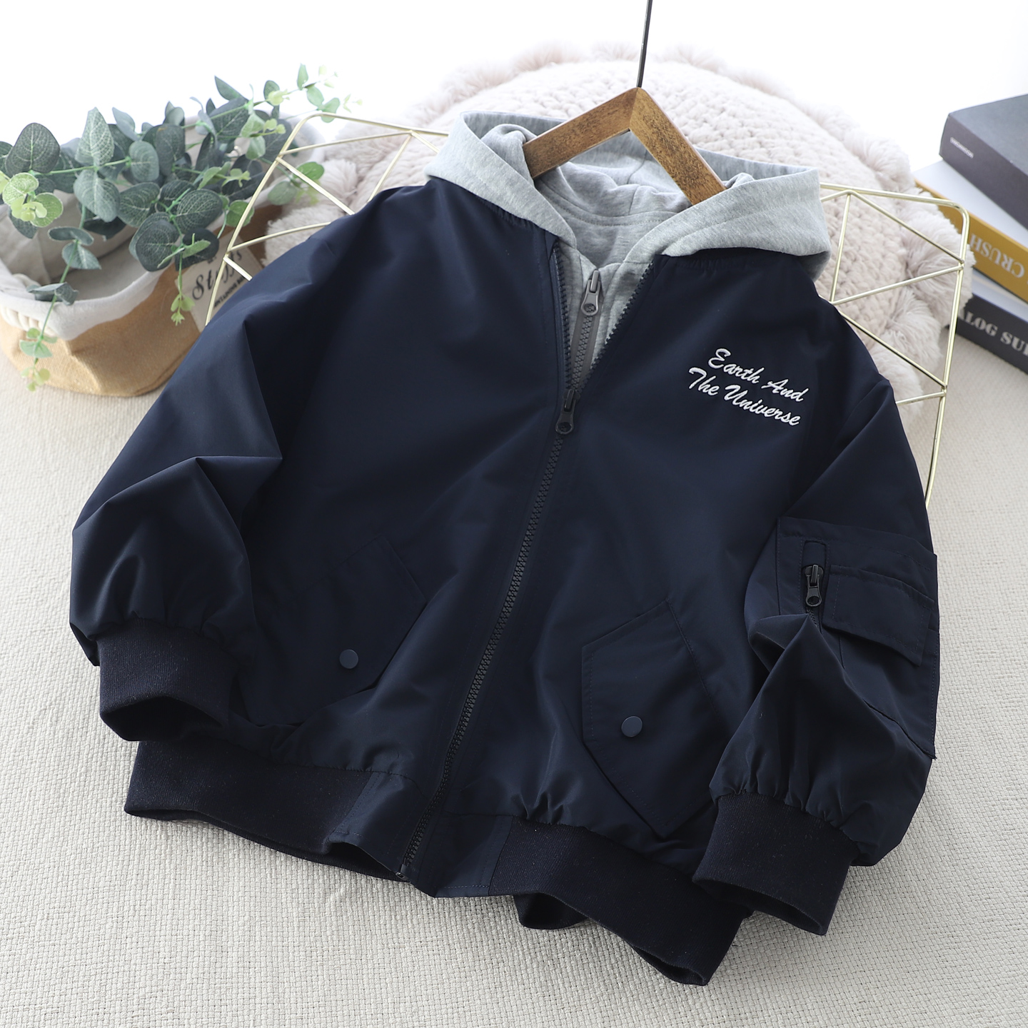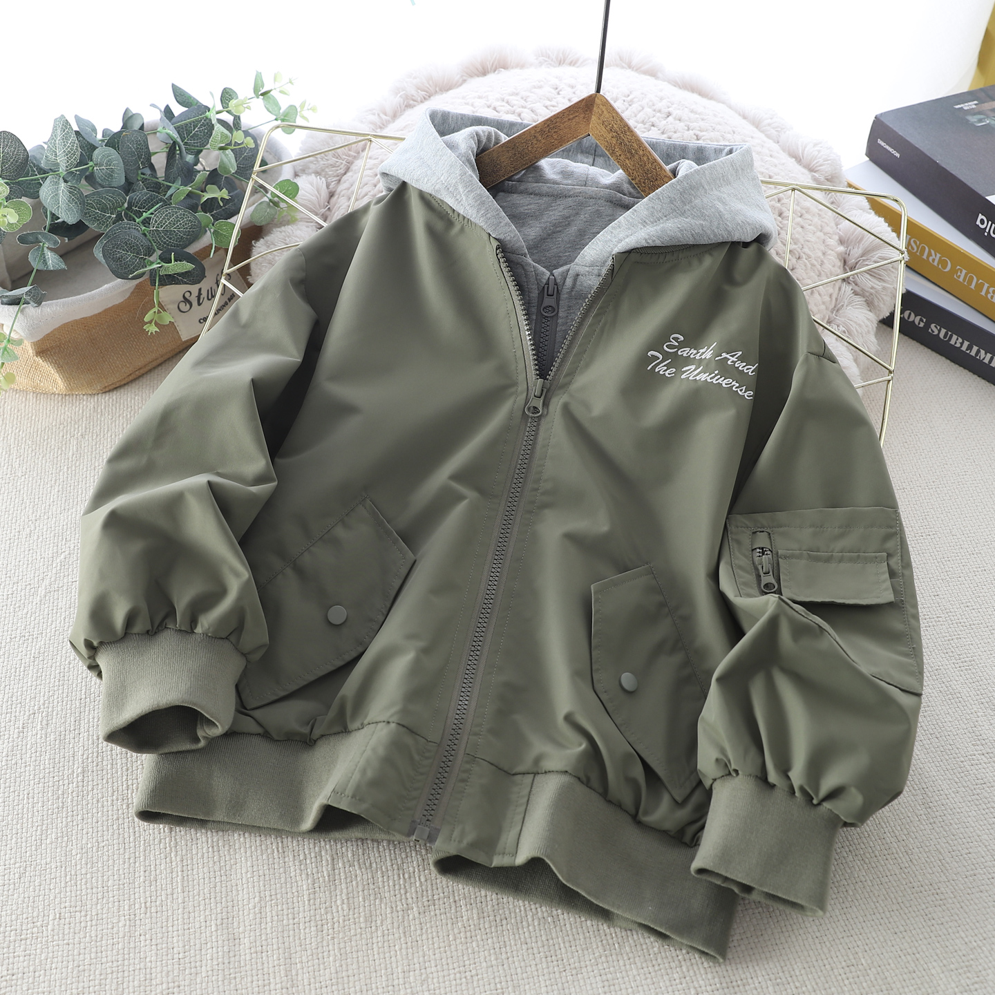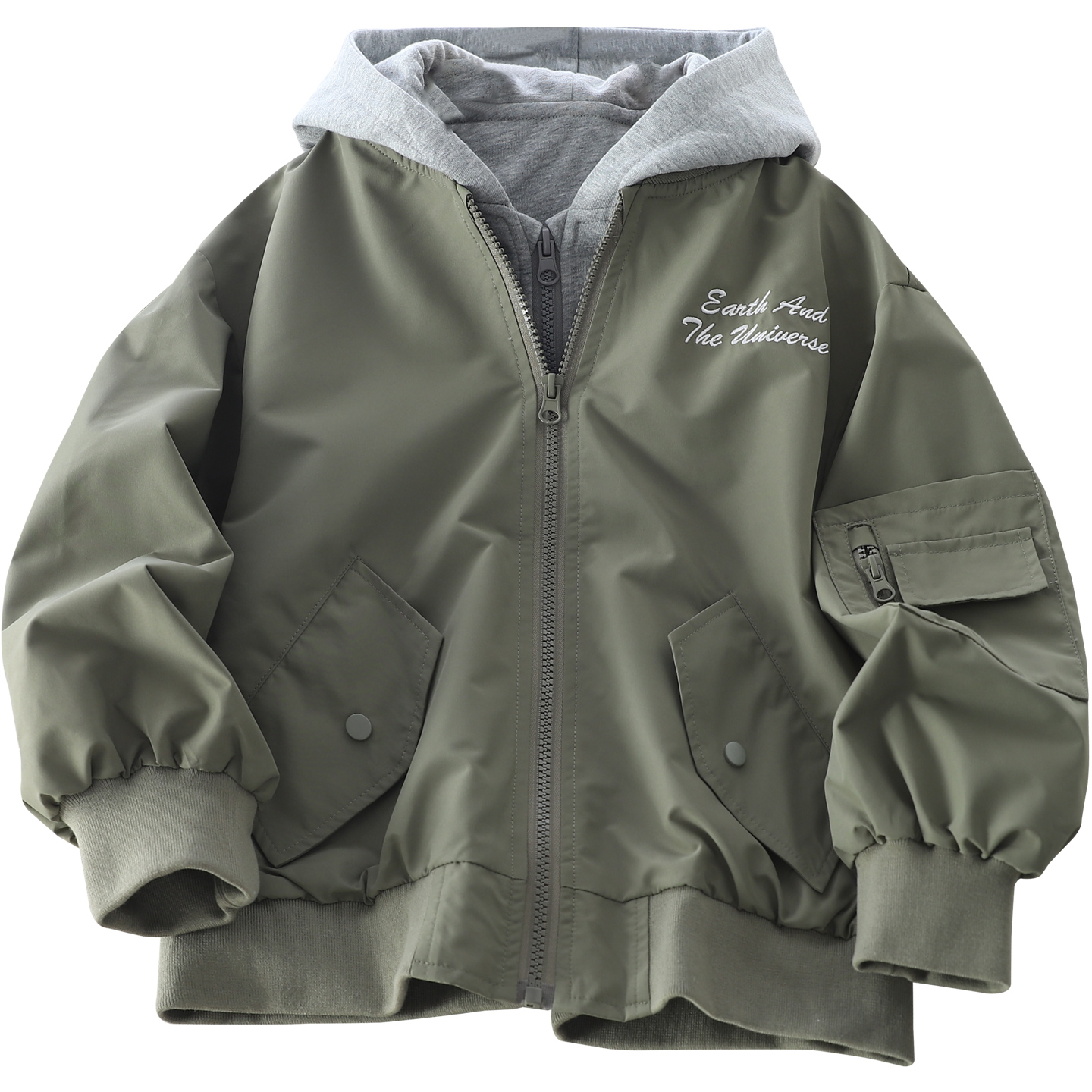 男童飞行服连帽外套2025春秋季儿童休闲夹克衫中大童假两件棒球服
