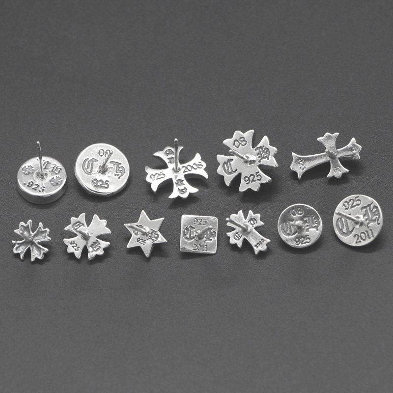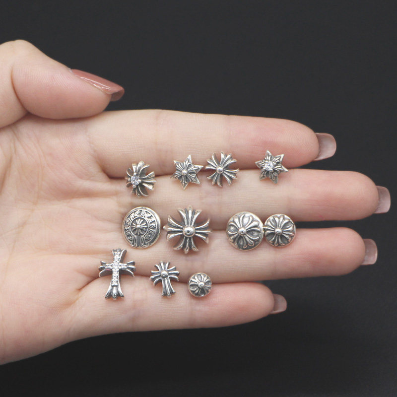 s925纯银镶钻十字花六芒星耳钉男女日韩气质百搭ins冷淡风耳饰潮