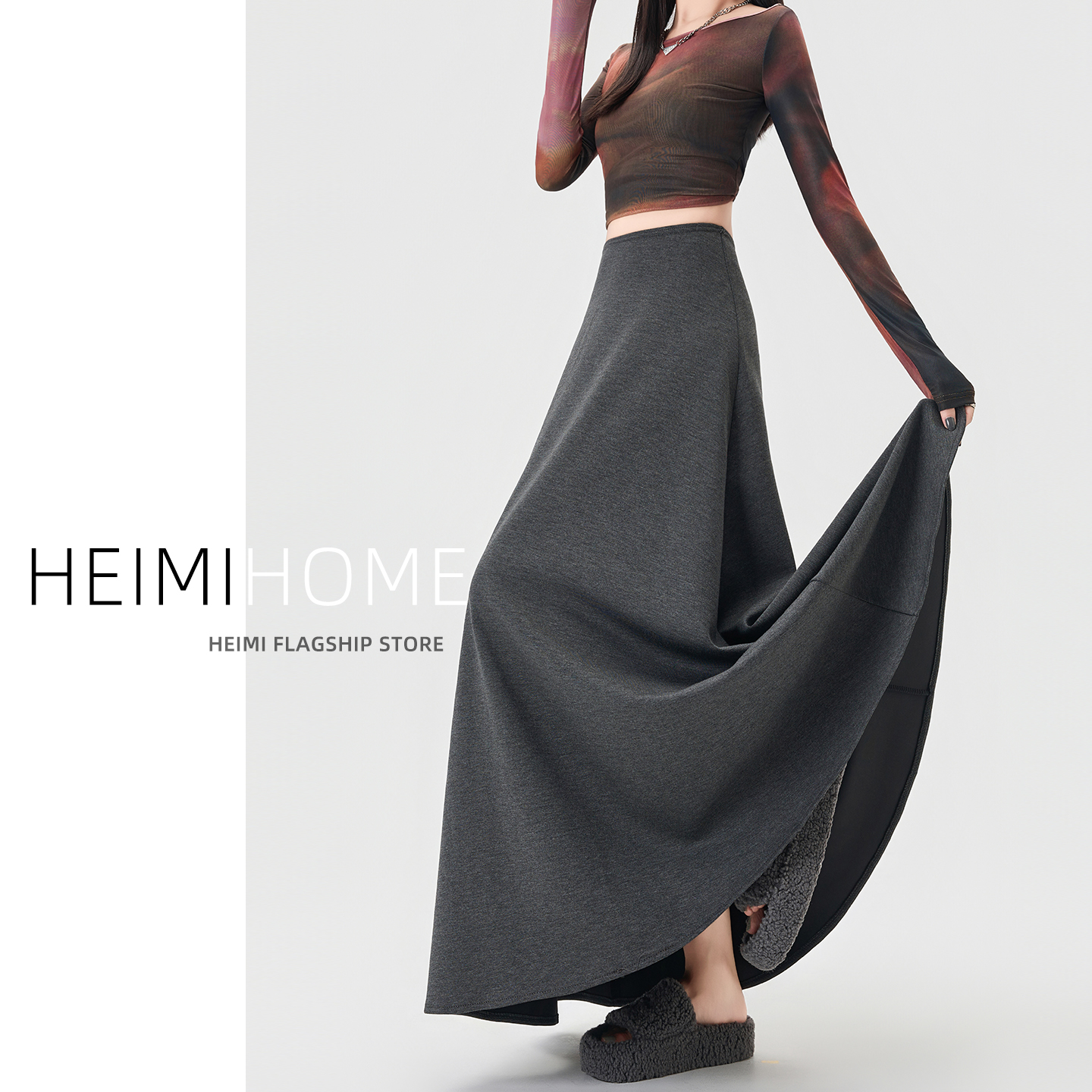黑色大摆针织裙女春秋冬慵懒感高腰伞裙中长款垂感A字糯米半身裙