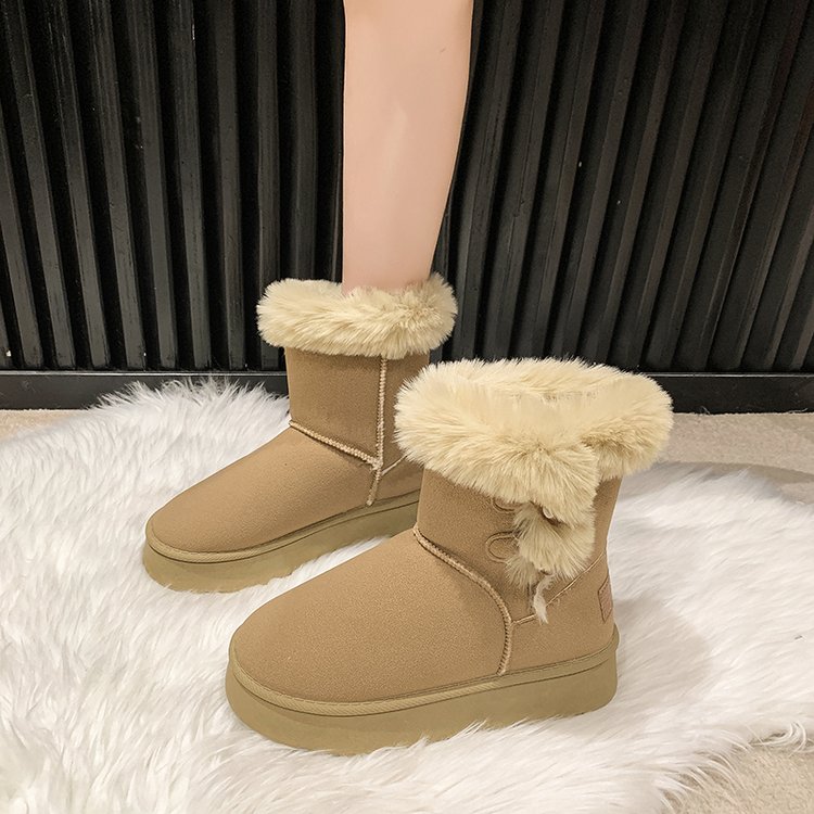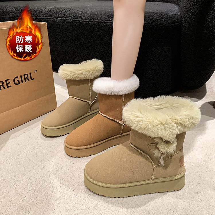 厚底雪地靴女皮毛一体2025新款冬季鞋子网红爆款防水保暖面包棉鞋