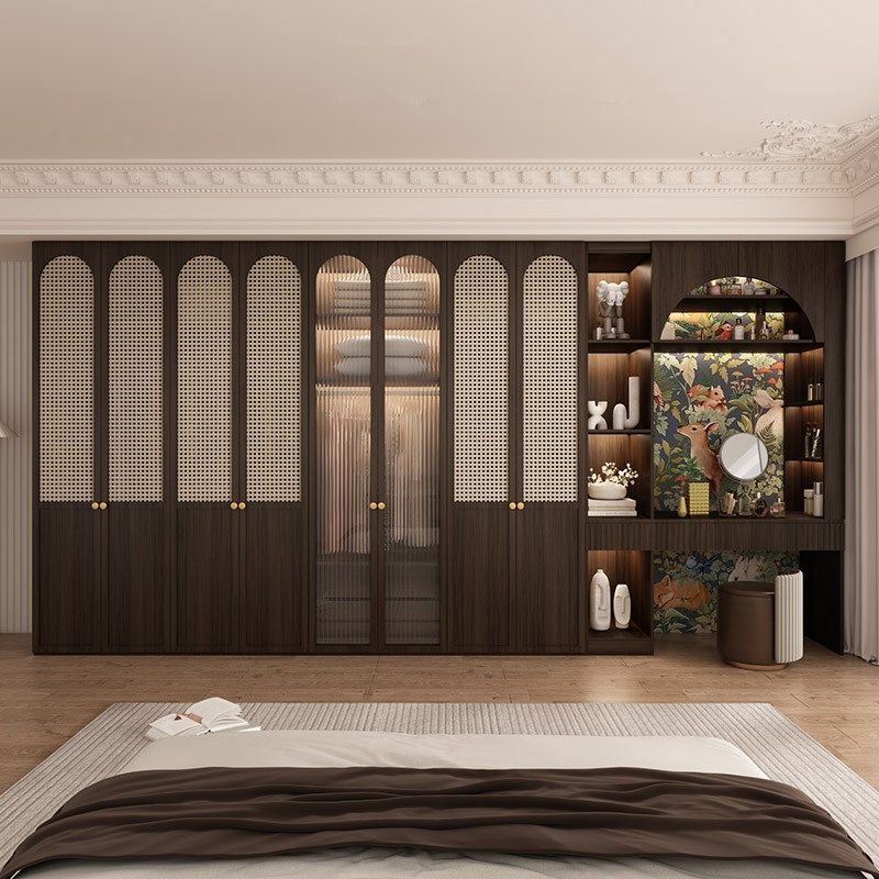 侘寂复古enf级环保衣柜带玻璃门卧室实木家用欧松板整体衣橱定制
