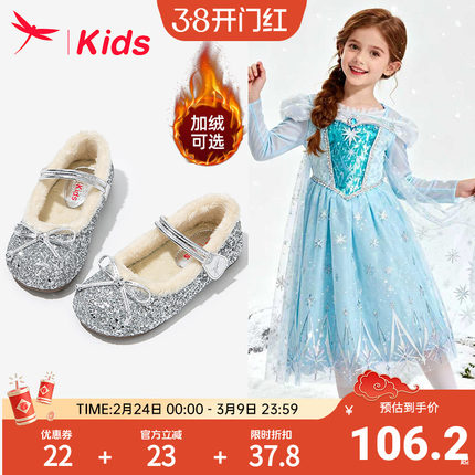 【清仓】红蜻蜓女童鞋子儿童艾莎公主小皮鞋冬季加绒2026新款软底