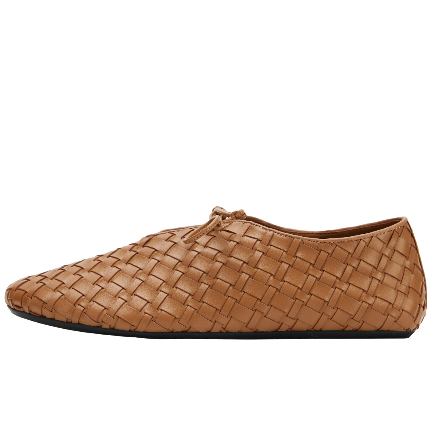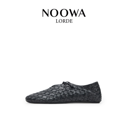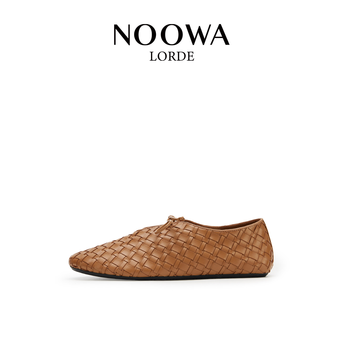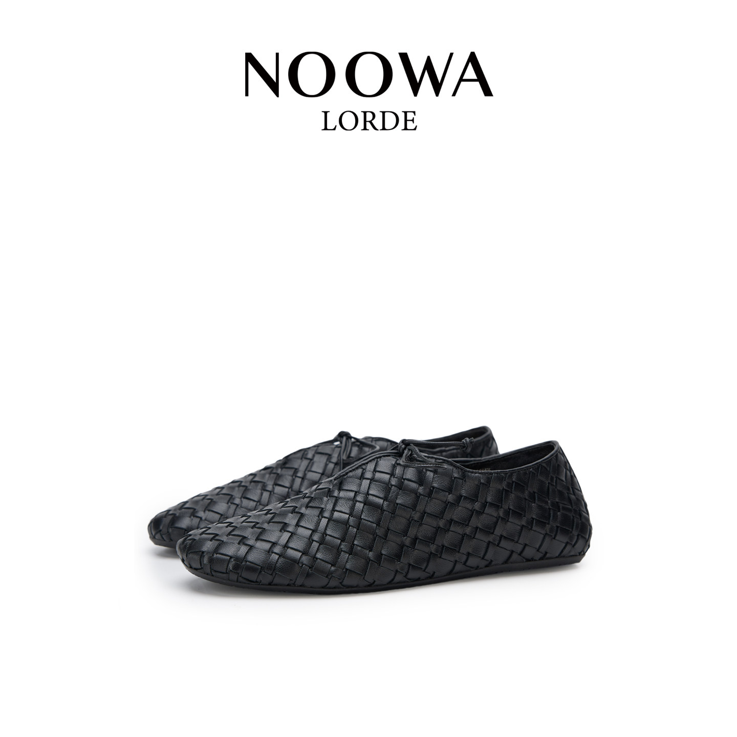 NOOWA真皮平底单鞋女2025新款时尚编织复古软底轻便浅口芭蕾舞鞋