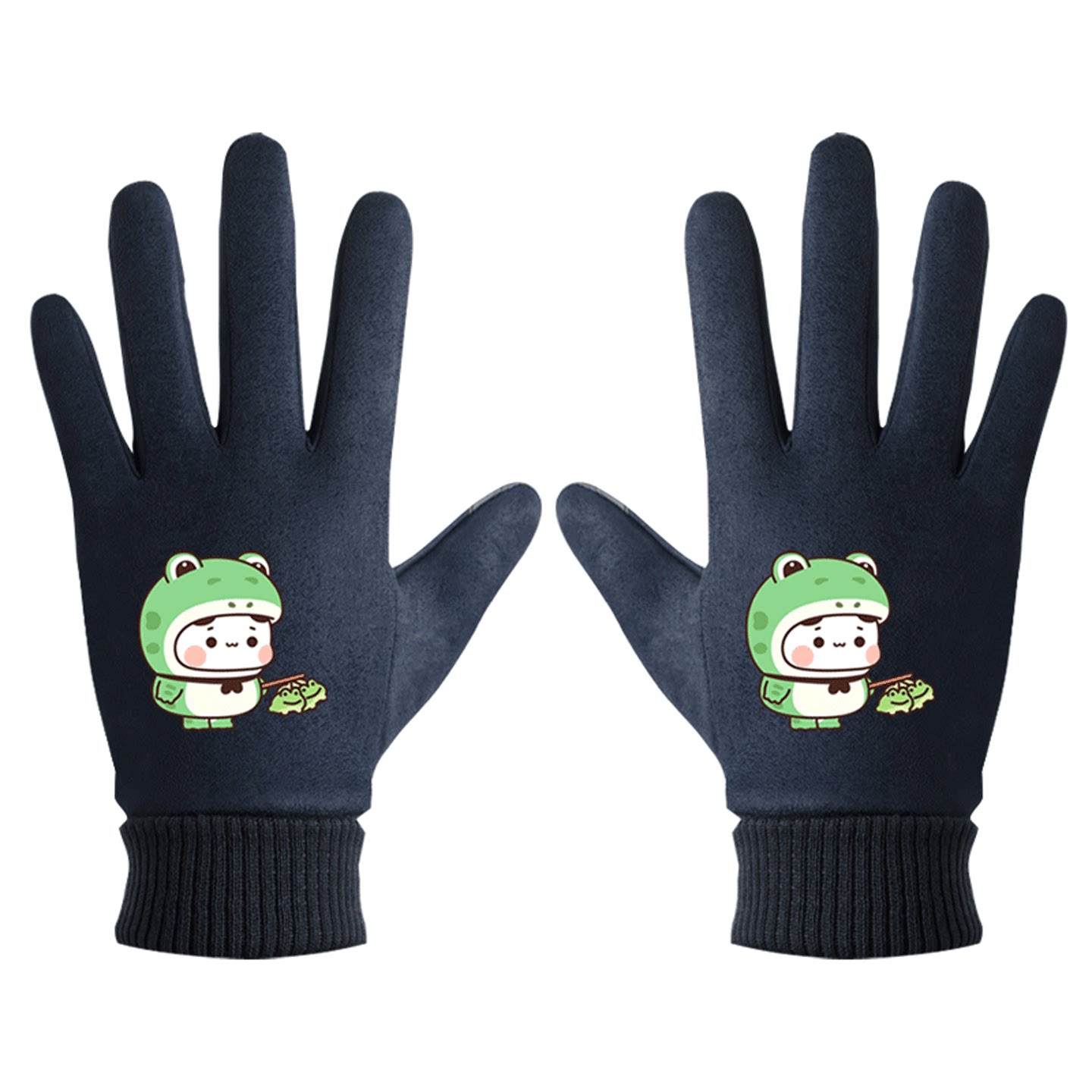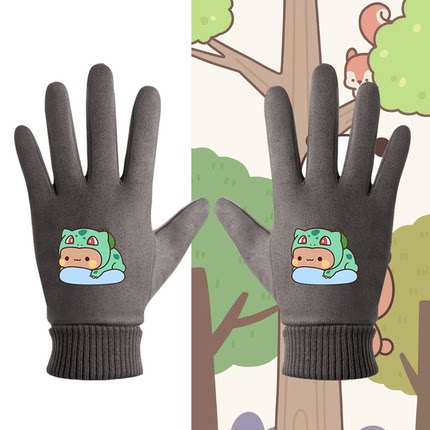 一二和布布动漫周边动物卡通印花男女冬季百搭上定制骑行分指手套