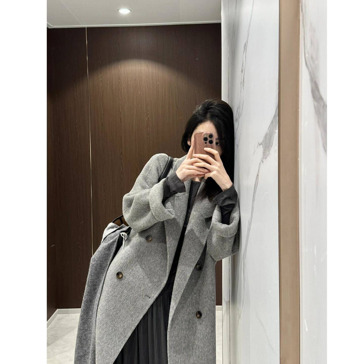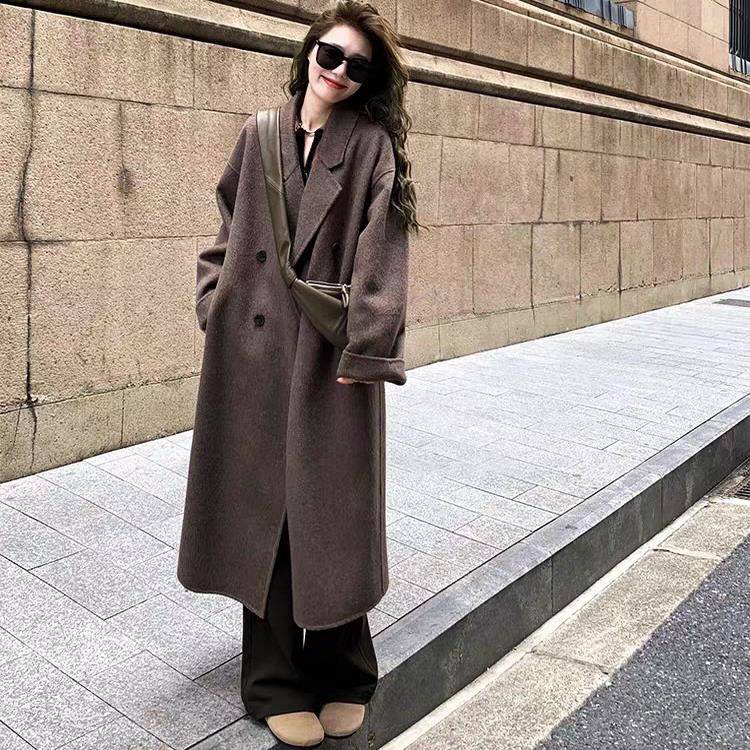 燕麦白色双面羊绒大衣女中长款2025秋冬新款高级感韩系羊毛呢外套