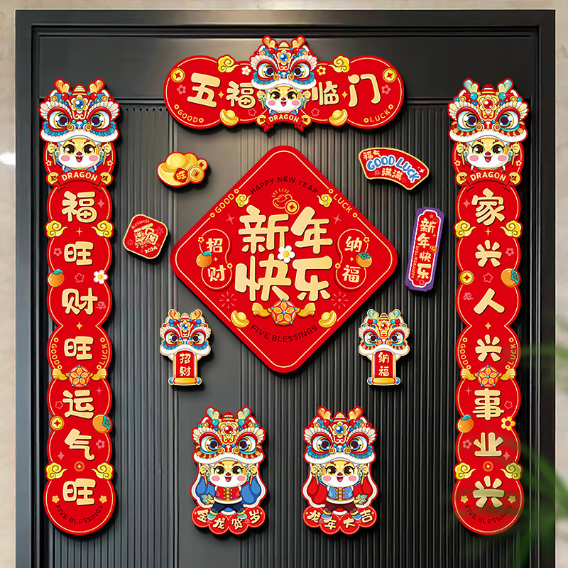 磁吸对联春节家用2024新款龙年B创意春联新年过年福字门贴装饰布