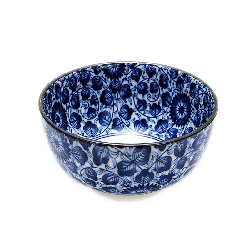 美浓烧日本进口青花瓷餐具唐草纹牛肉拉面碗家用日式和风高脚汤碗