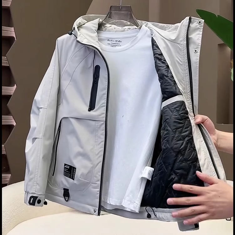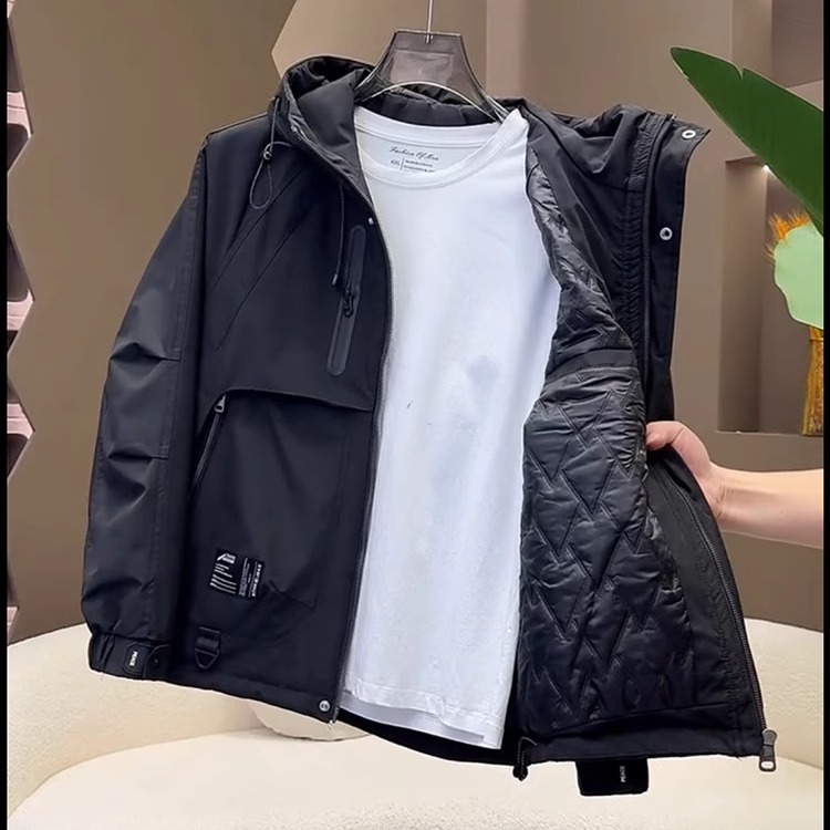冬季新款男士棉衣外套加厚保暖连帽工装夹克潮流百搭休闲冲锋衣男