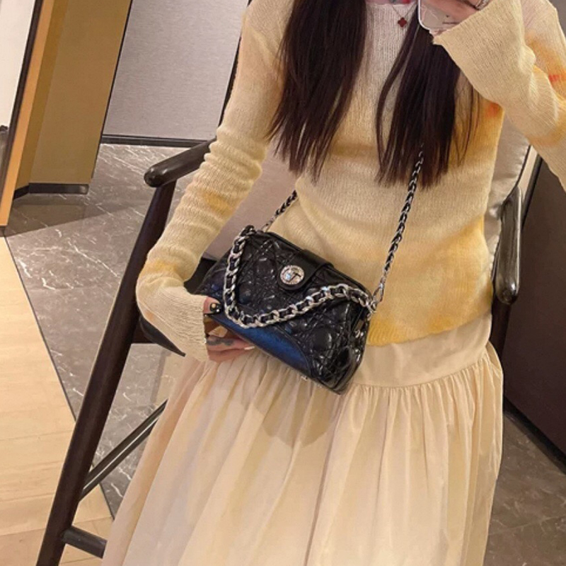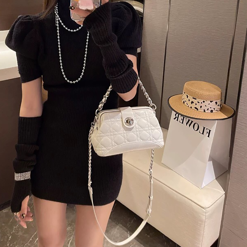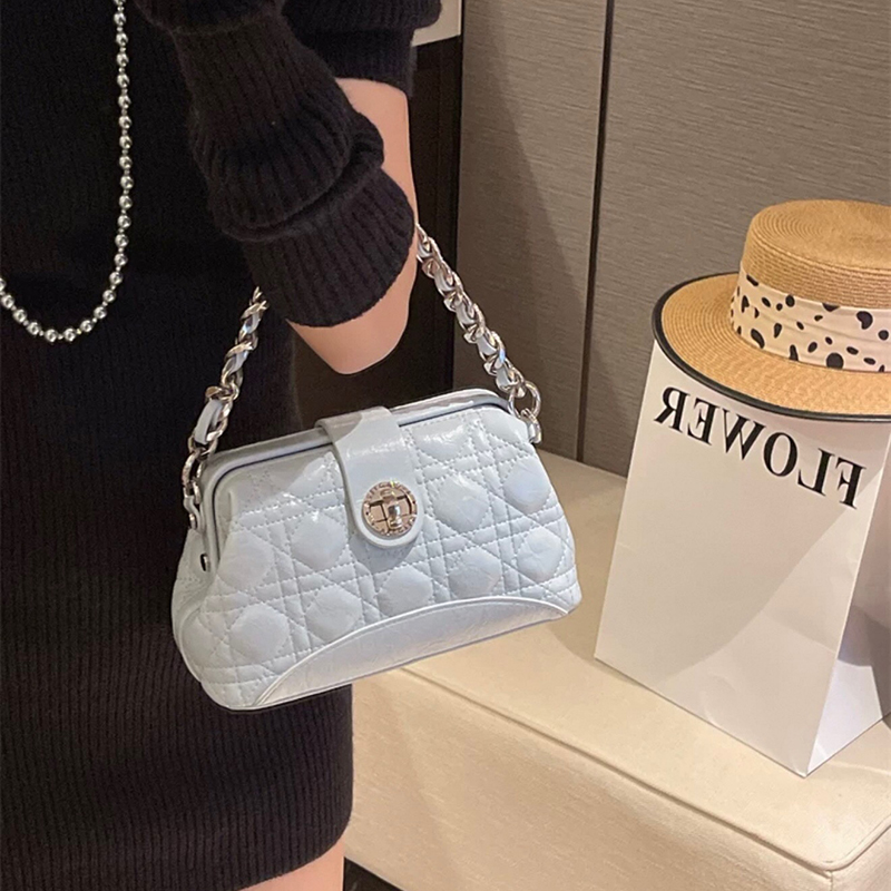 高级感菱格链条小方包2025新款夹子包简约斜挎包轻奢小香风单肩包