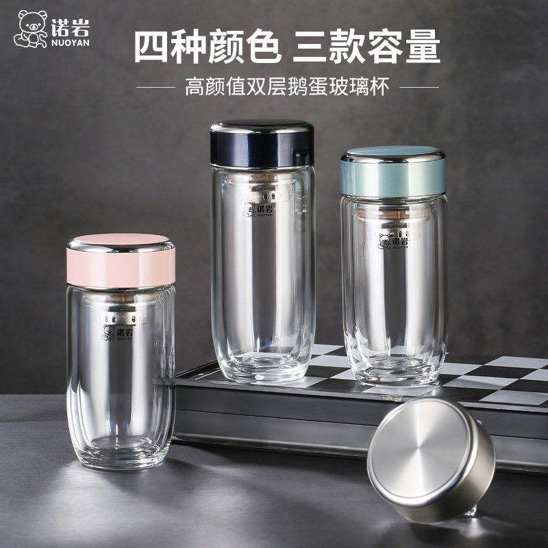 诺岩玻璃杯双层隔热泡茶杯男2026新款鹅蛋水杯女家用便携喝水杯子