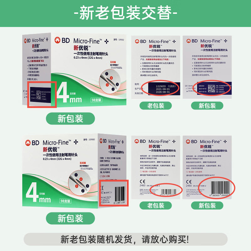BD新优锐胰岛素专用针头糖尿病诺和笔通用一次性注射4mm5mm针头