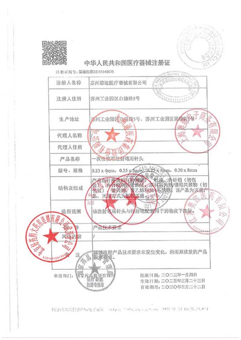 胰岛素注射针头新优锐0.23*4mm