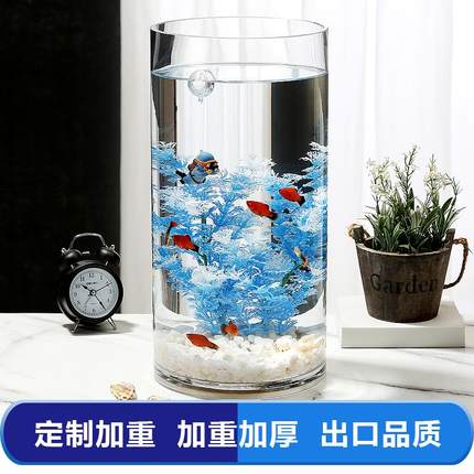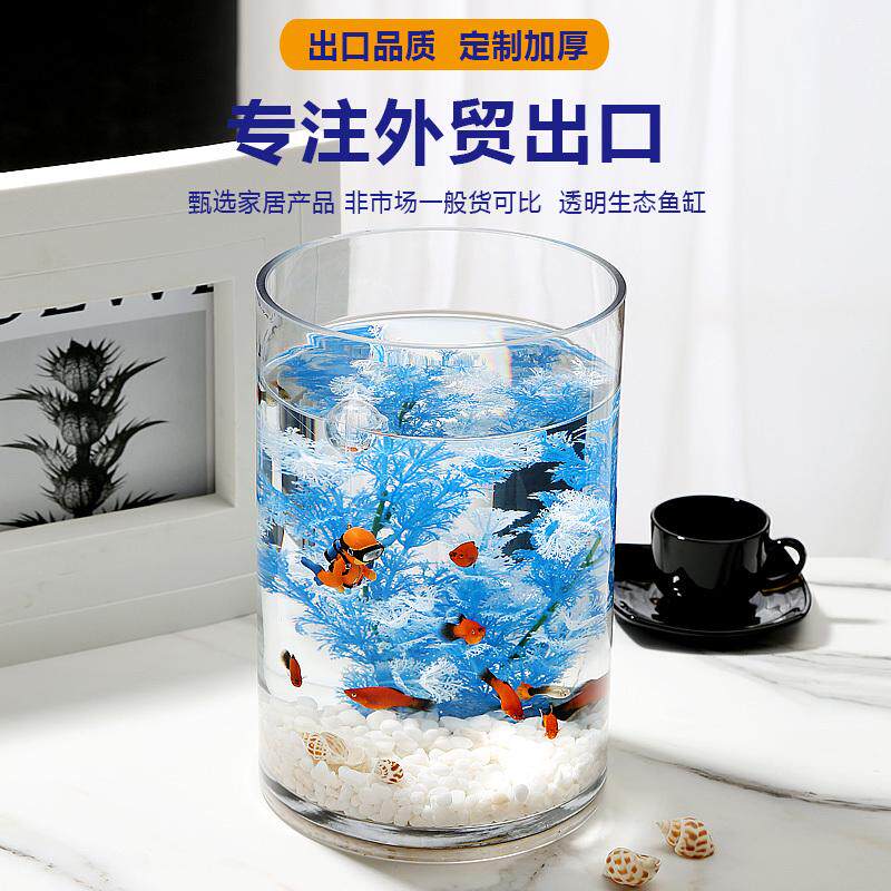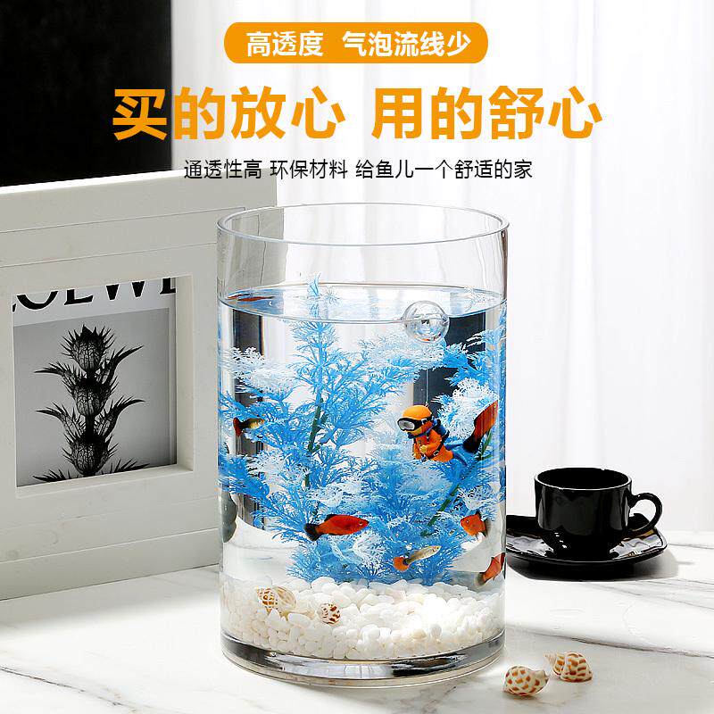 超白加厚玻璃鱼缸客厅小型桌面圆柱形直筒金鱼缸透明水培造景创意