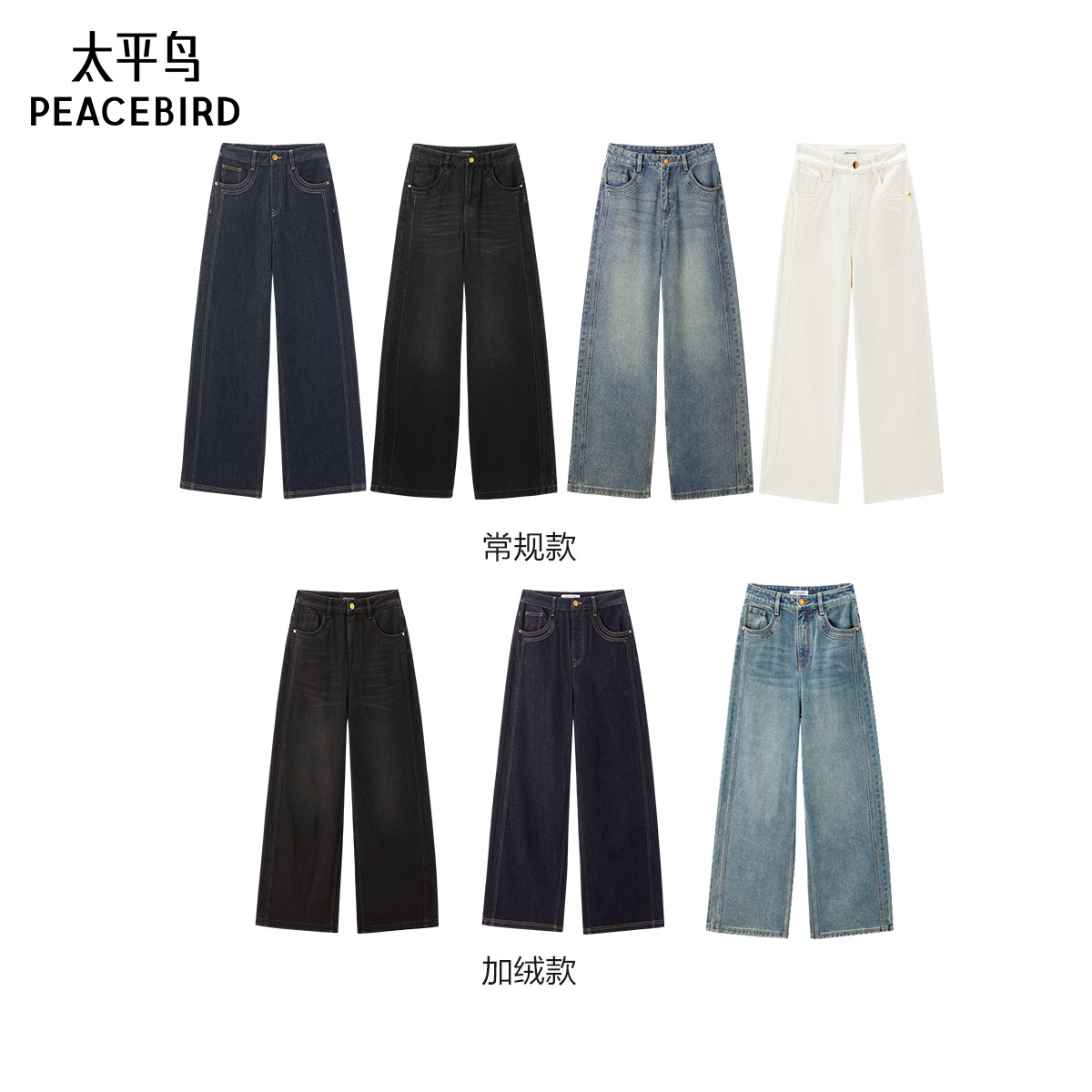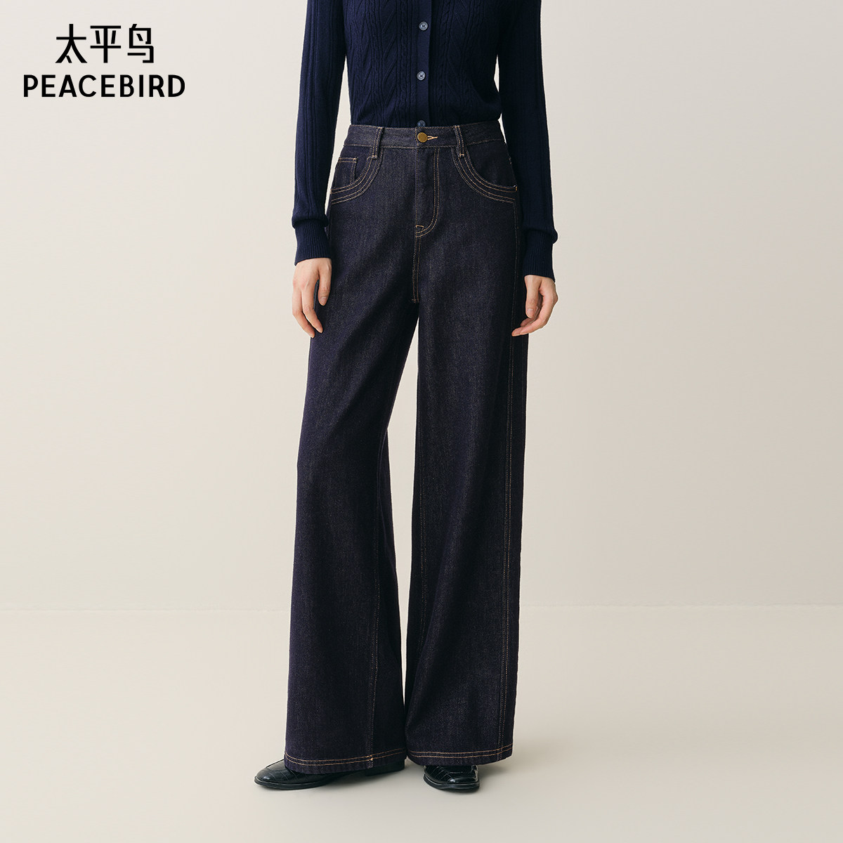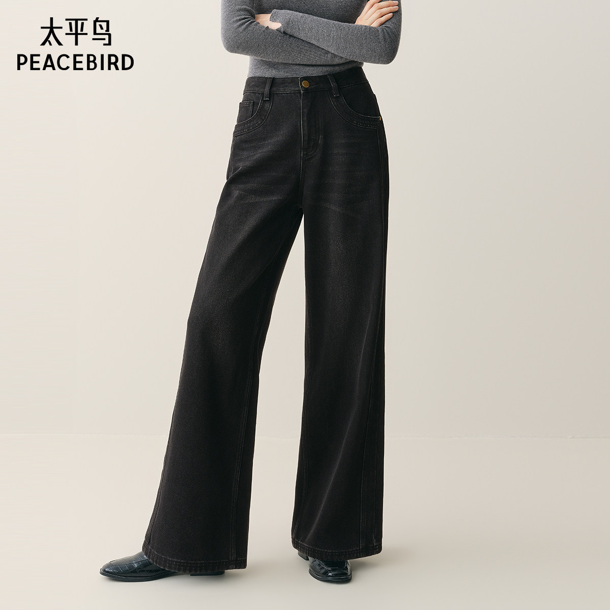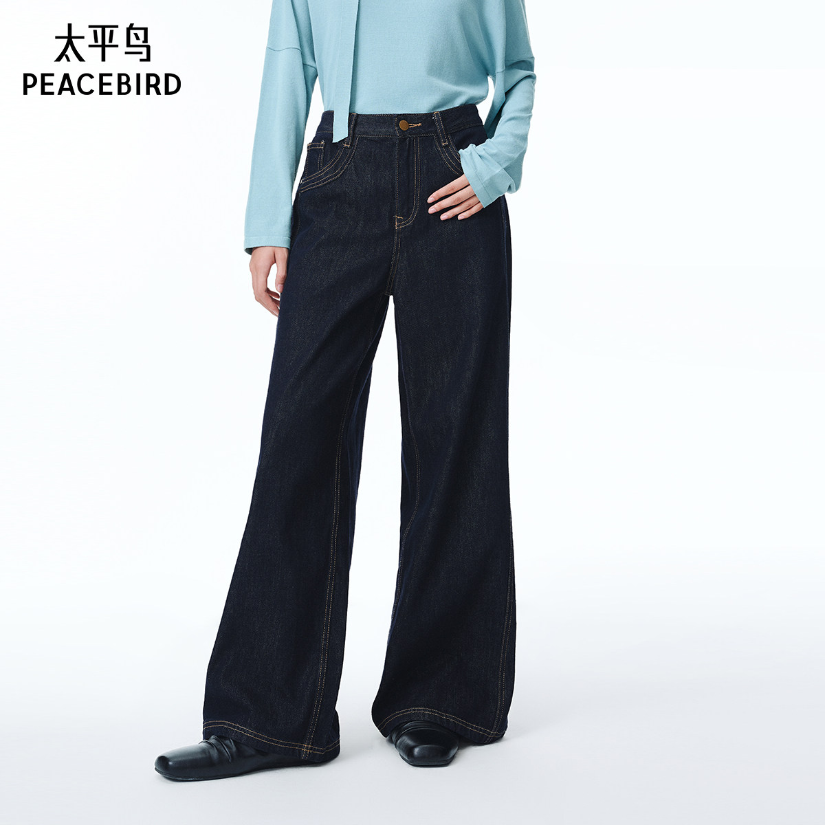 【达播专属】太平鸟高腰阔腿牛仔裤大直筒牛仔裤