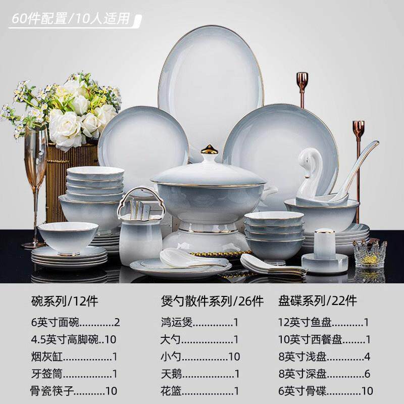 采购产品景德镇骨盘,骨瓷器餐具套装,金边瓷碗,斯堪的纳维亚家