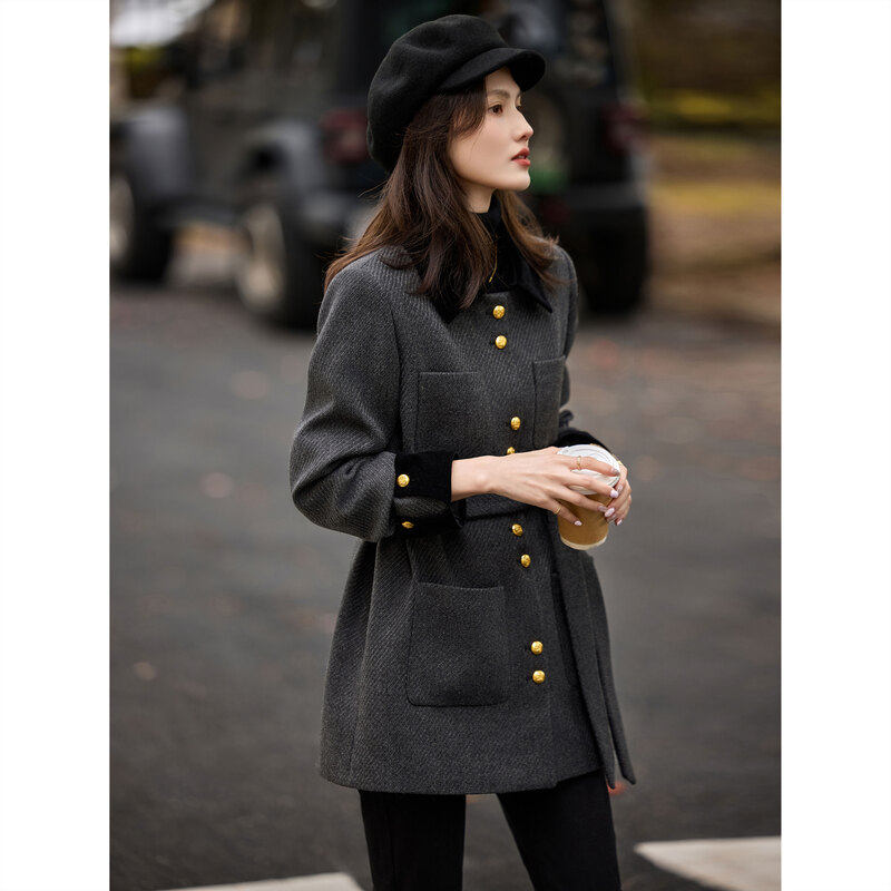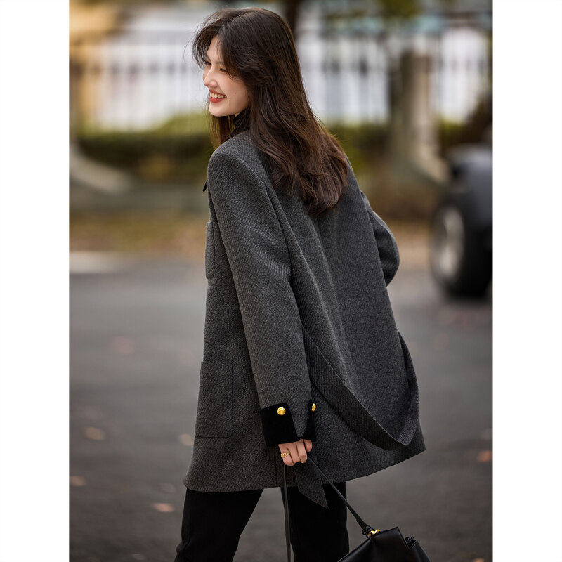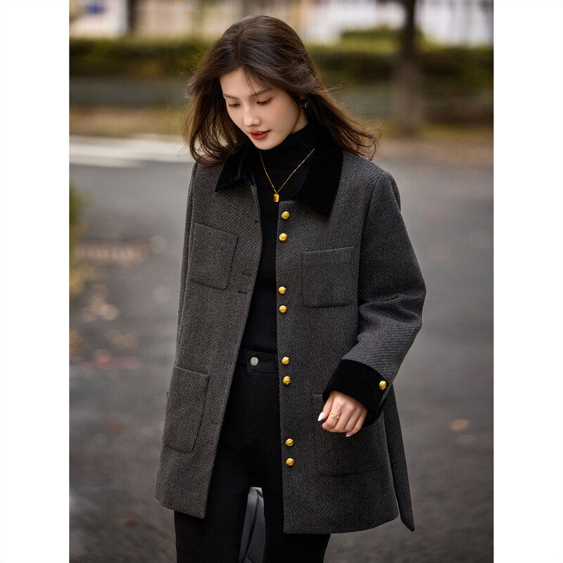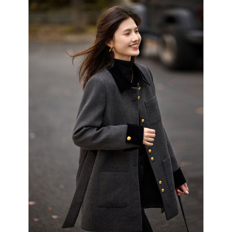 苏醒的乐园冬季法式气质配腰带中长款翻领卷袖小香风外套羽绒服