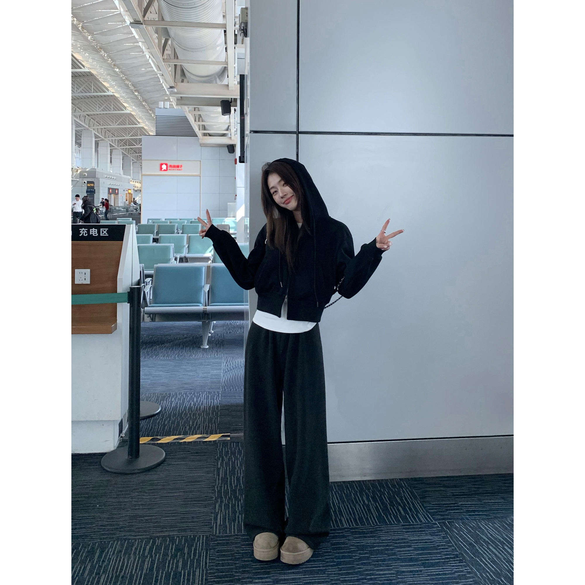 黑色连帽卫衣外套女春秋新款休闲