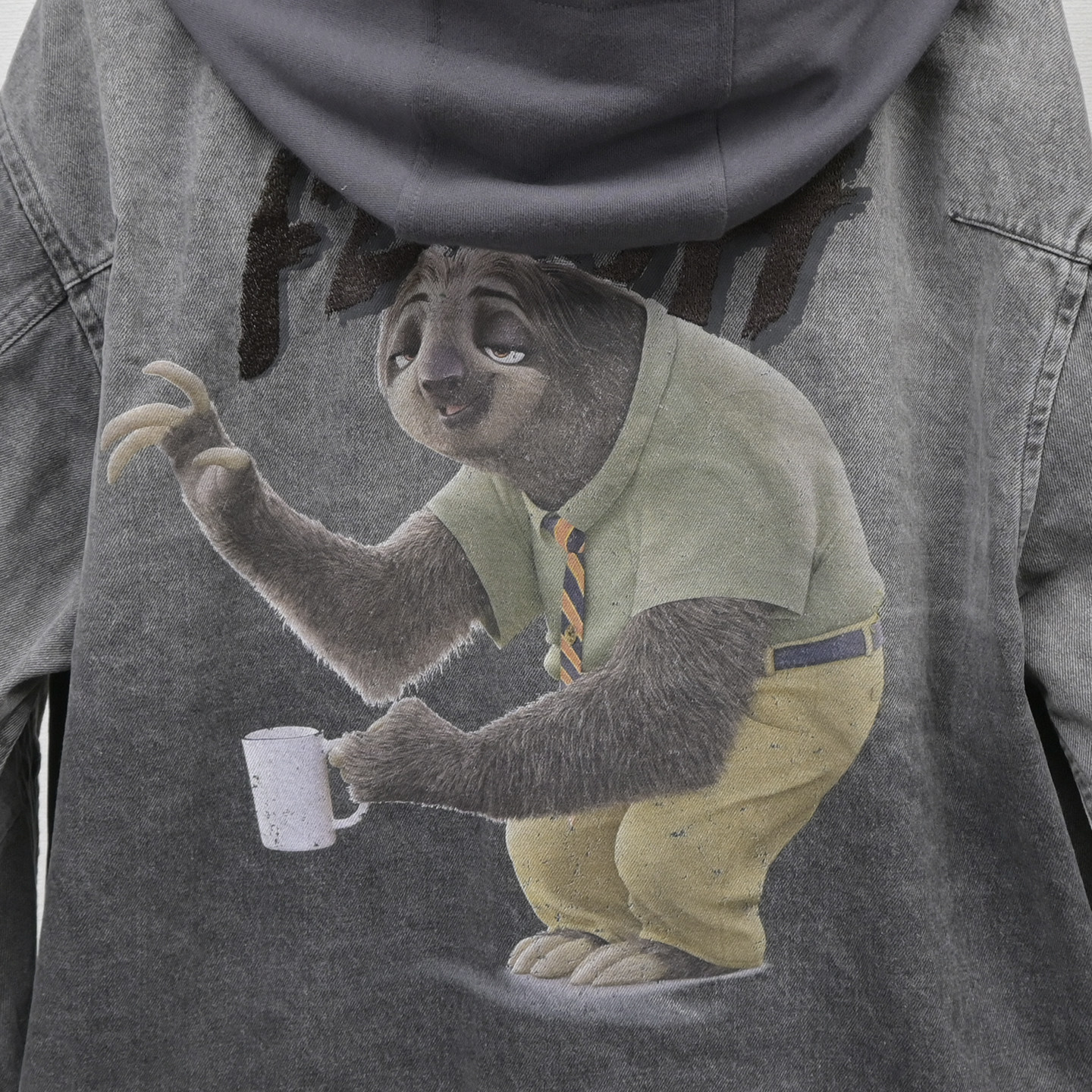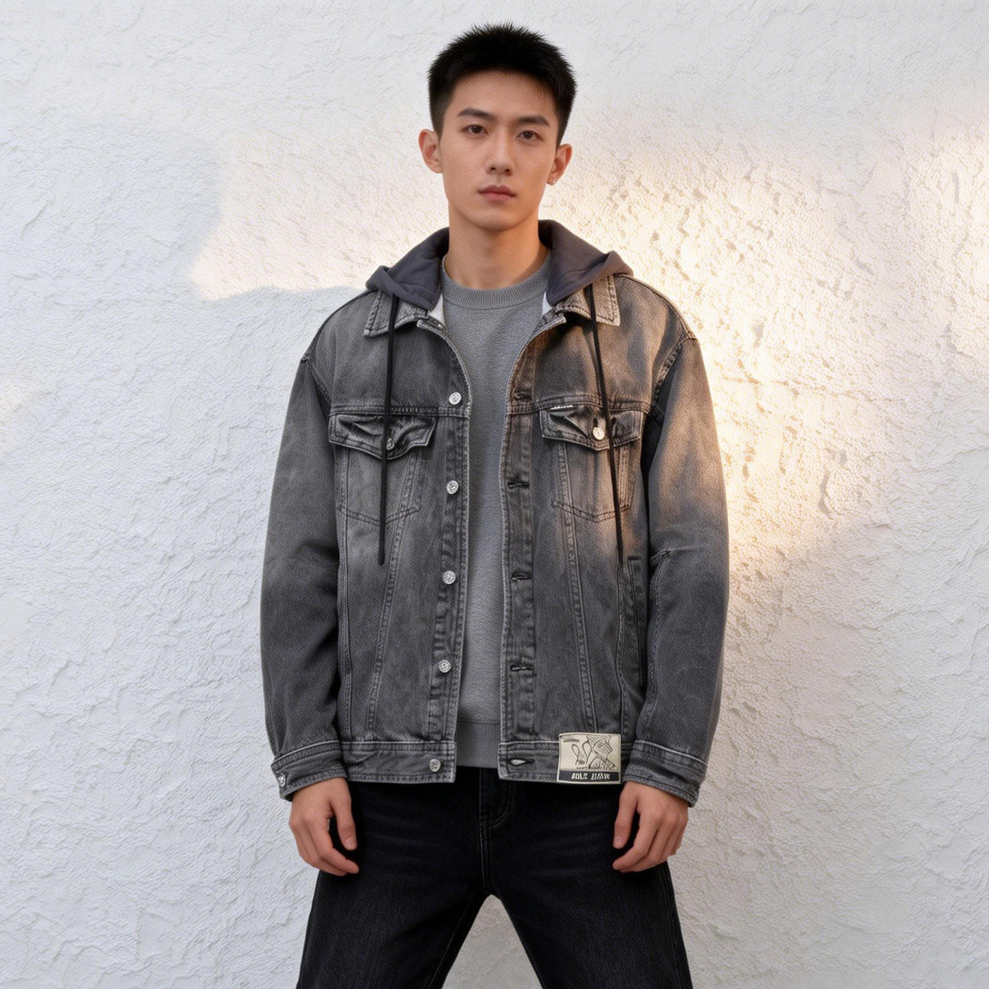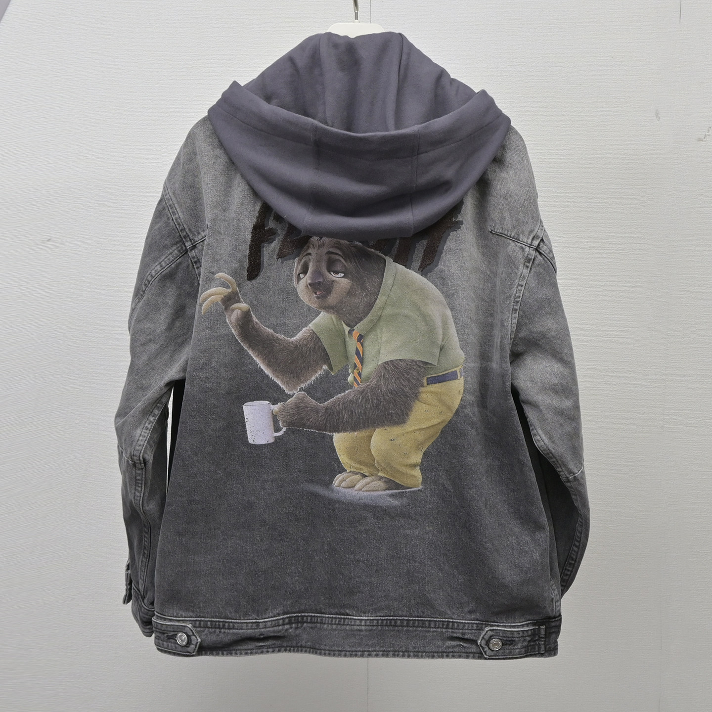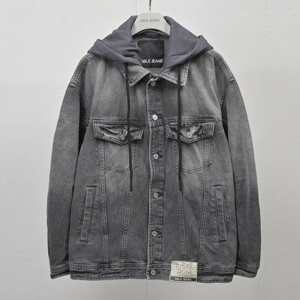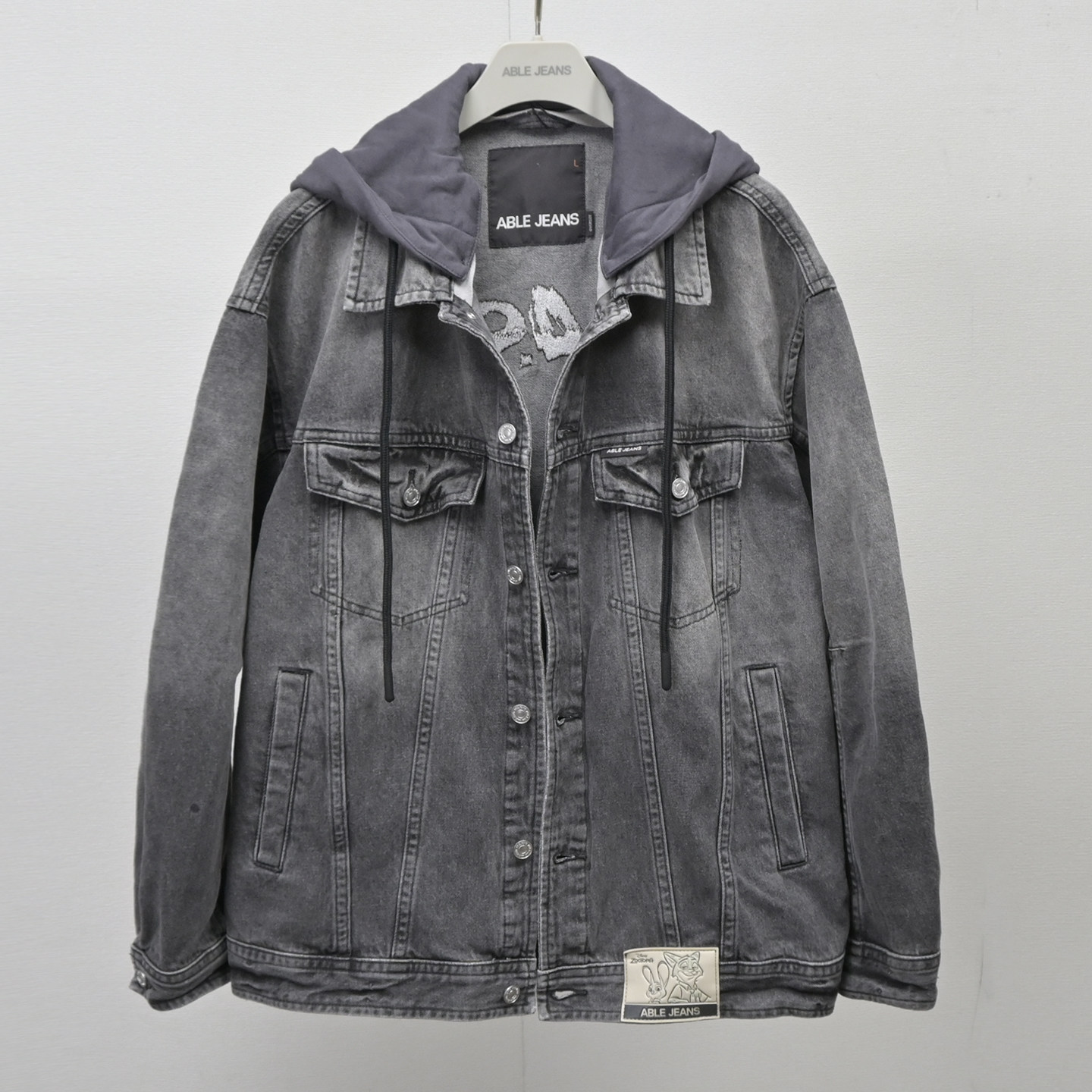 ABLE JEANS男女印绣花牛仔夹克宽松休闲街头中性可脱卸帽春秋外套