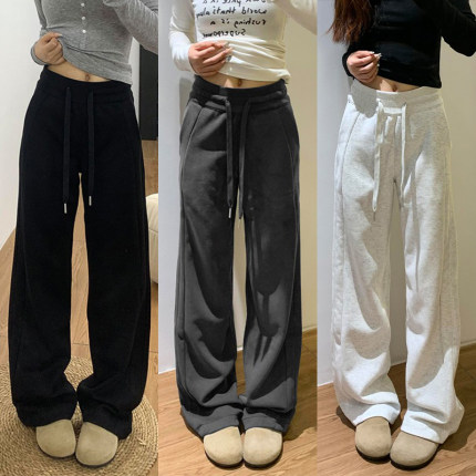 大码胖mm美式高腰运动休闲裤女直筒秋冬宽松显瘦梨形身材阔腿卫裤