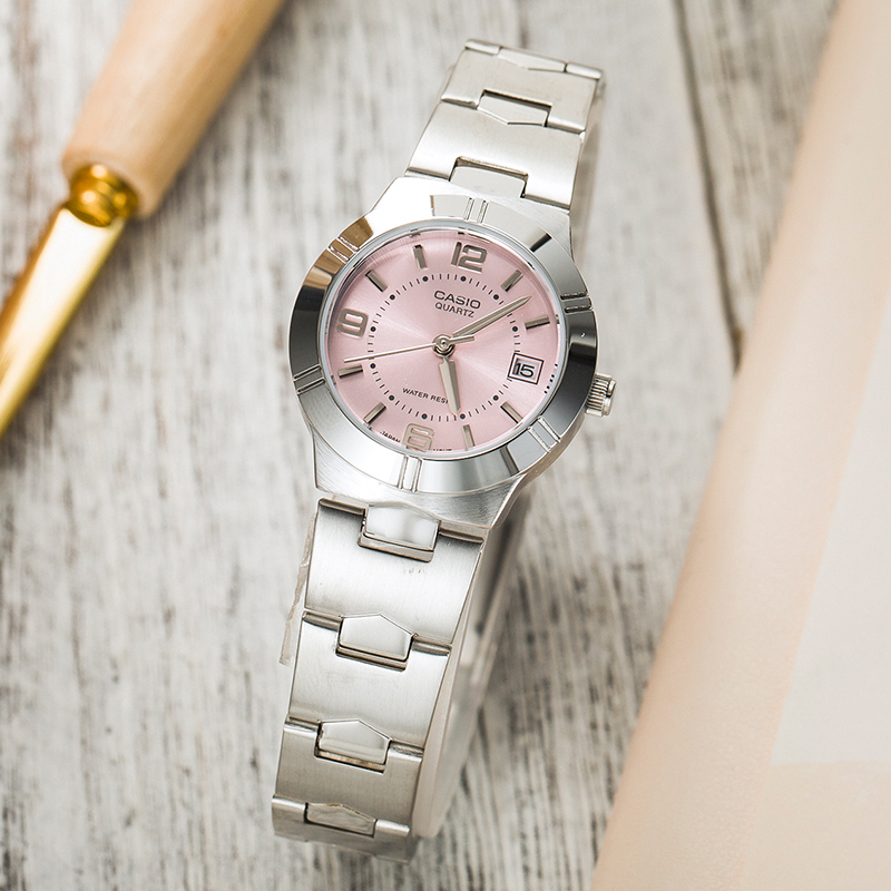 卡西欧手表女士极简风正品casio防水简约钢带女表LTP-1241D-4A