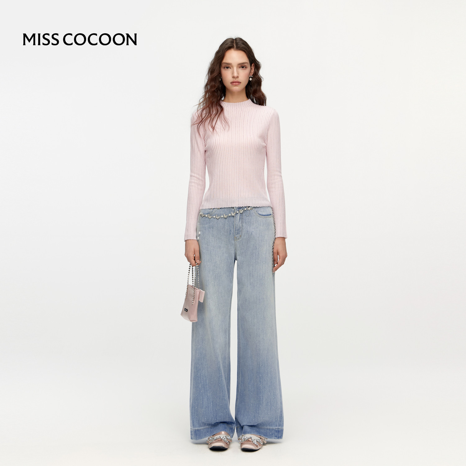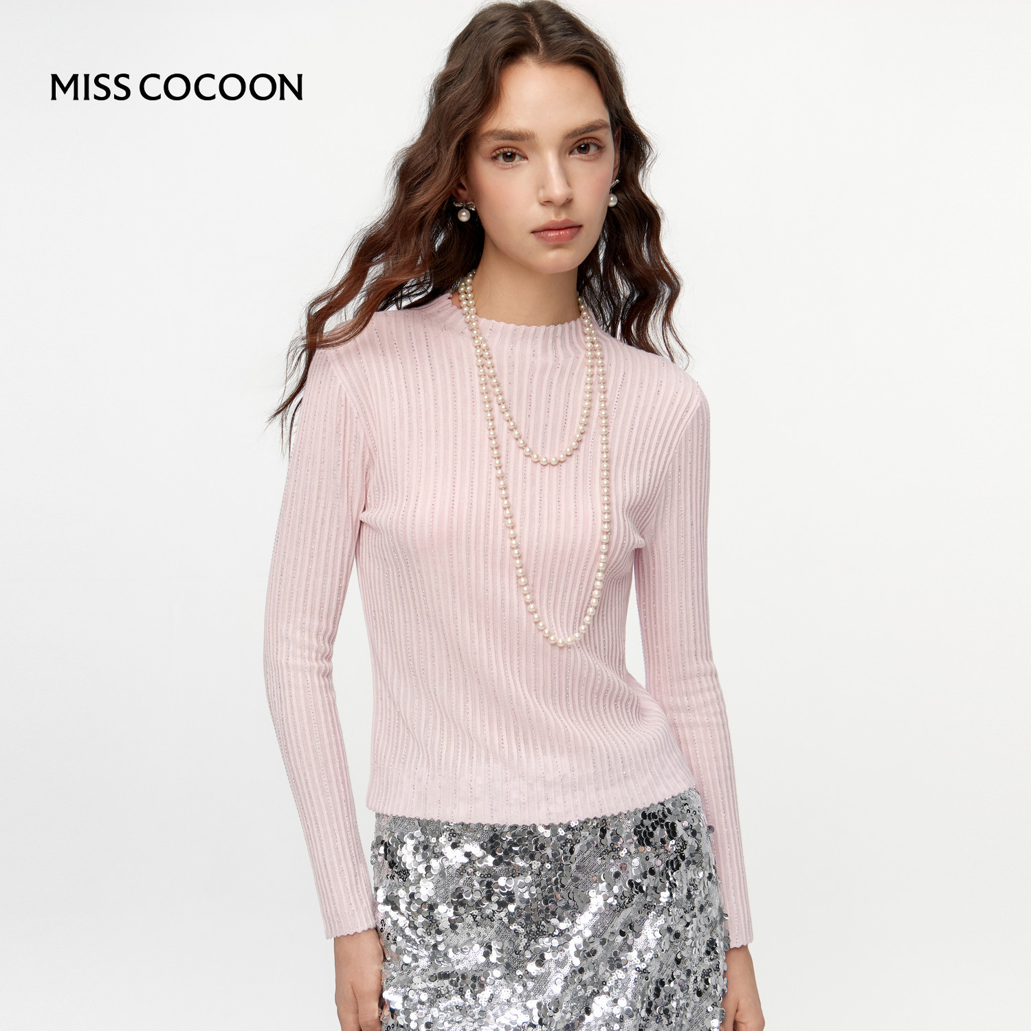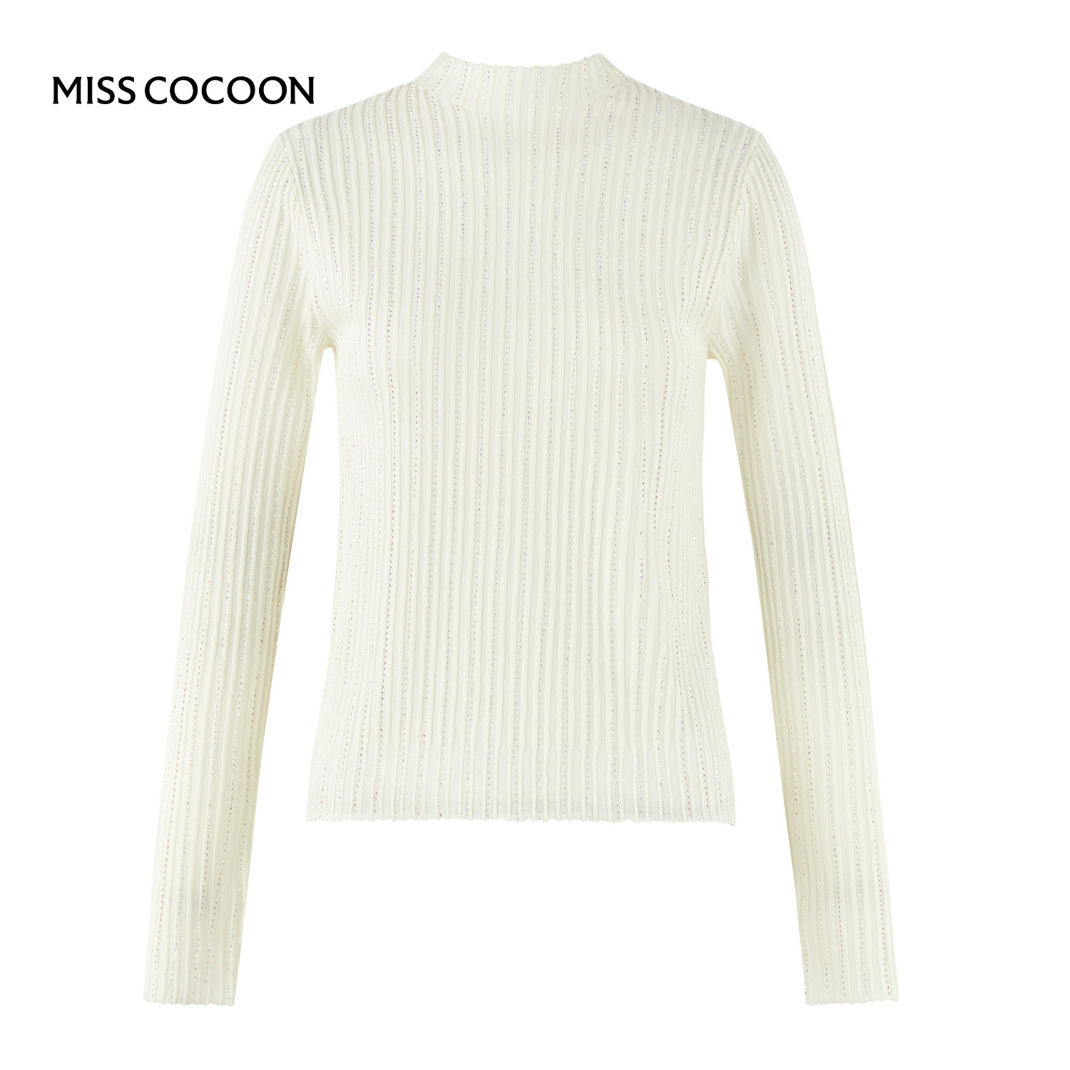 MISSCOCOON可可尼白色针织衫女2025秋季新款半高领羊毛打底上衣