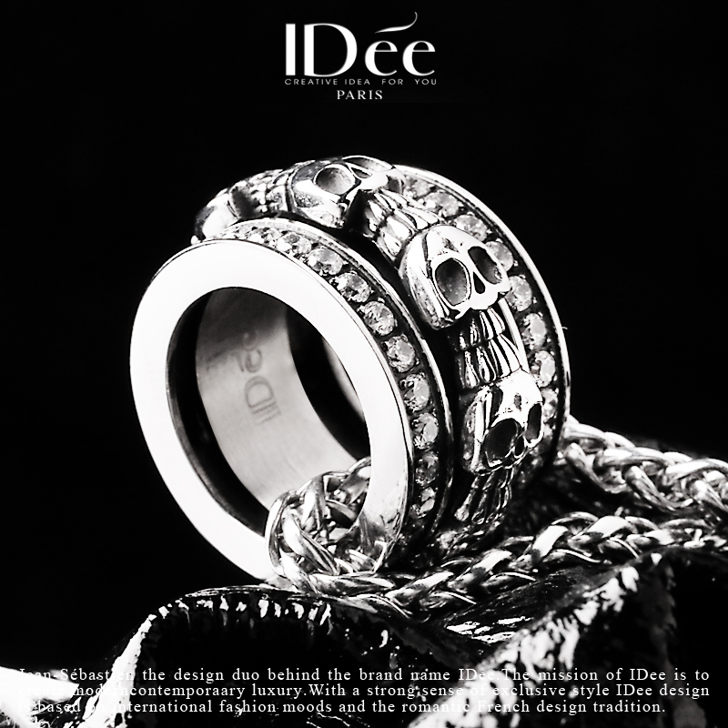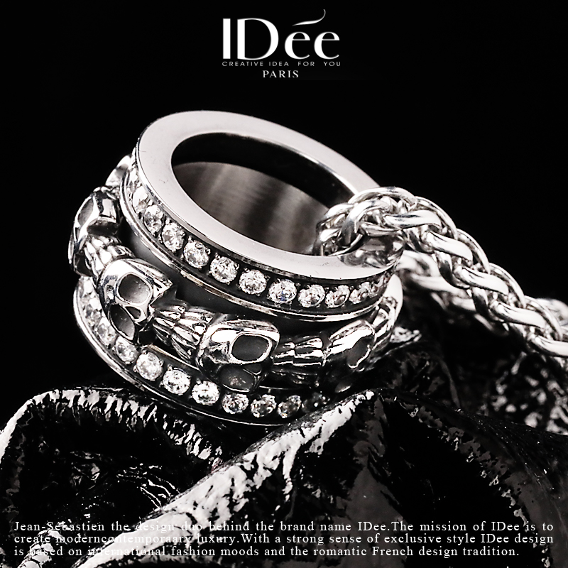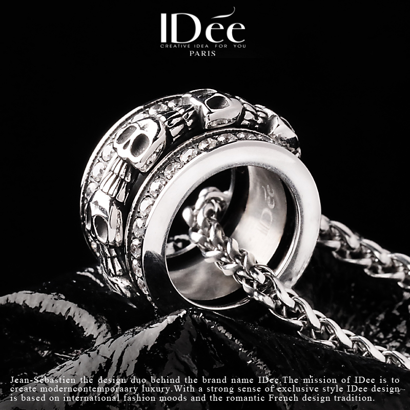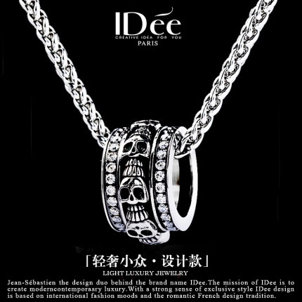 法国IDee骷髅环项链男生潮牌银色潮流吊坠设计感小众百搭配饰