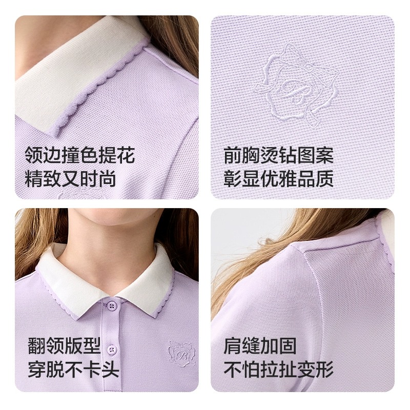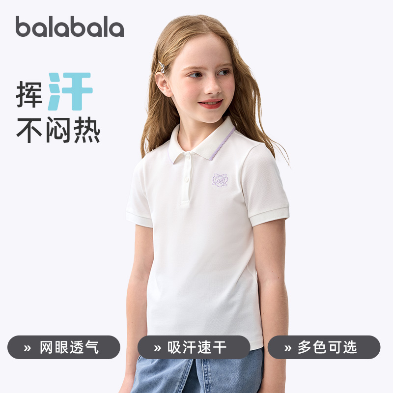 巴拉巴拉女童短袖t恤中大童半袖上衣儿童翻领POLO衫2025夏装童装2