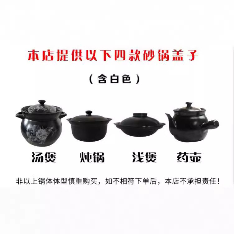 康舒陶瓷砂锅盖子单盖配件白黑色盖通用电炖锅汤煲沙锅盖中药盖子