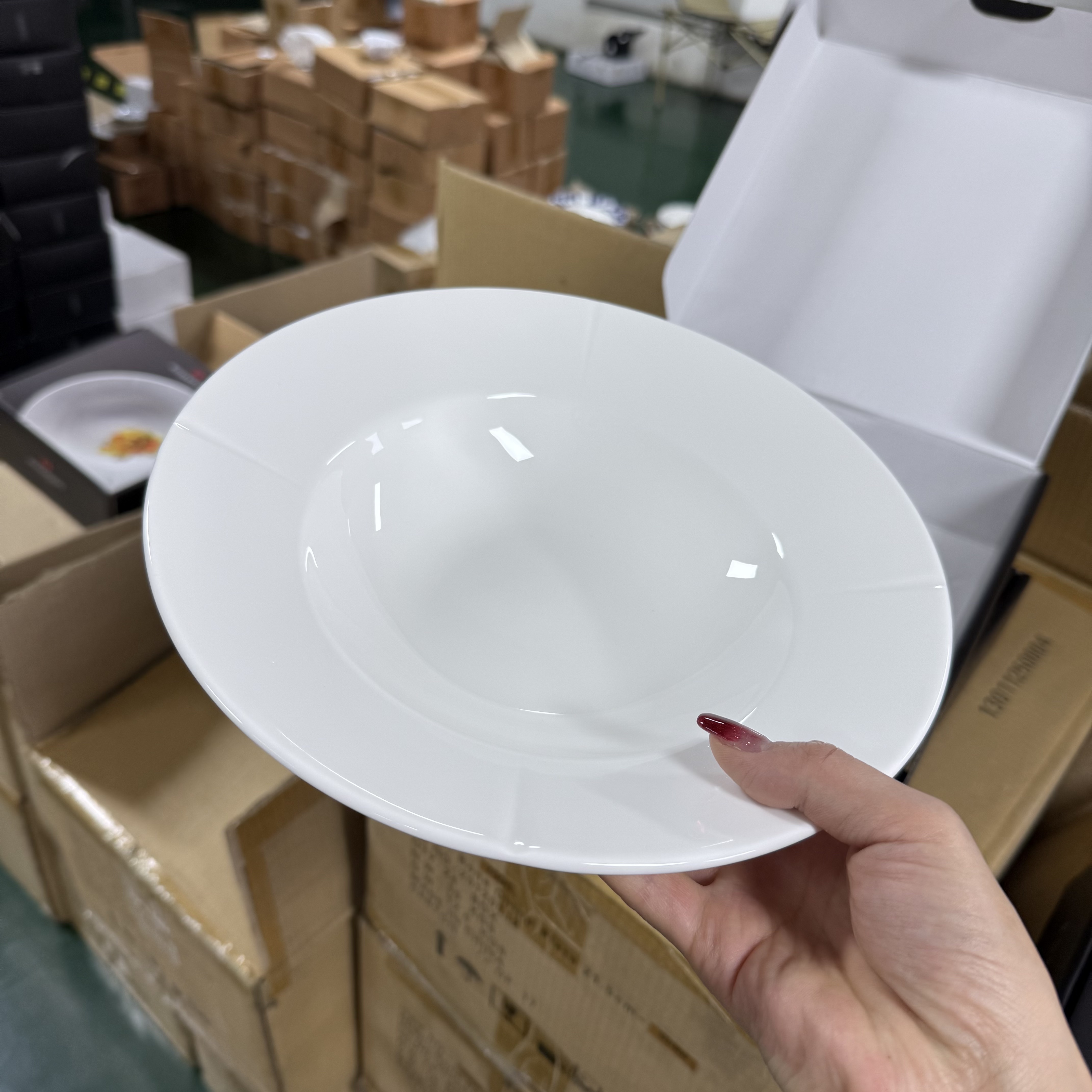 草帽盘陶瓷盘子意面盘餐具家用菜盘餐盘高级感深碟子西餐白色碗碟