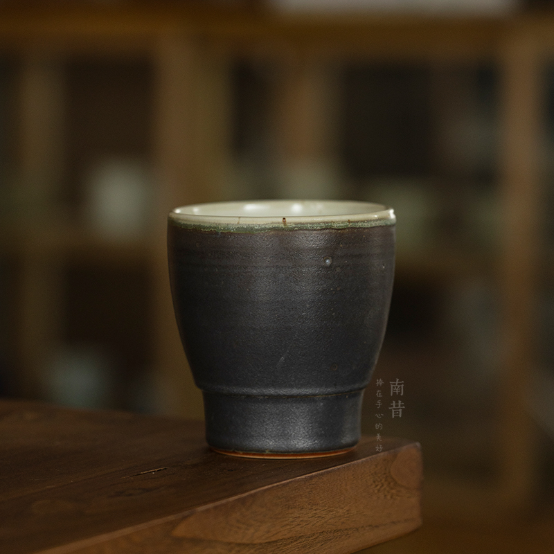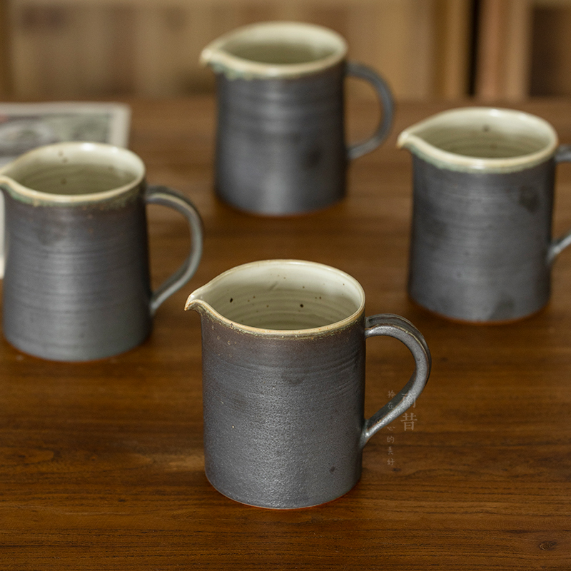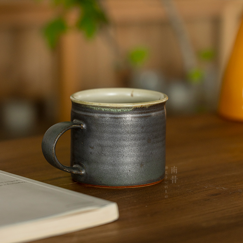 粗陶咖啡杯碟套装日式复古马克杯杯碟套装鎏金茶水杯子