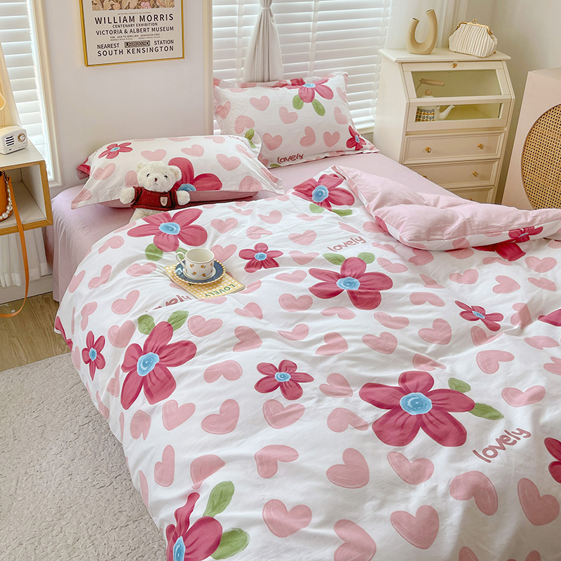 100%全棉四件套纯棉斜纹t套件单人被套学生三件套双人1.5m1.8米床
