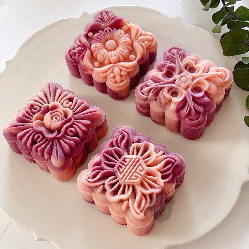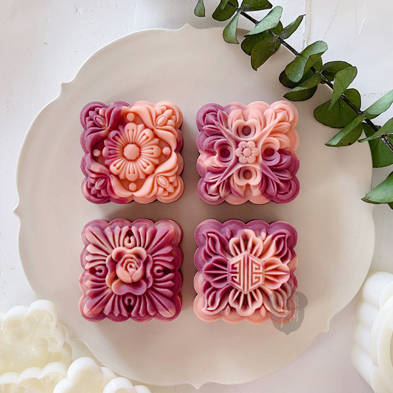 75g中式宫廷风立体花朵月饼模具中秋节花开富贵糕点家用商用压模