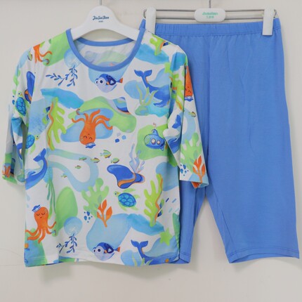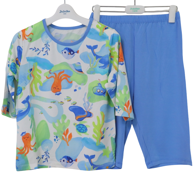 专柜新款久岁伴男童睡衣春夏莫代尔七分袖七分裤儿童男孩家居服