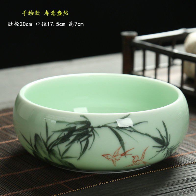 大号茶洗陶瓷茶渣缸家用水洗茶杯盆器皿茶具配件手绘小号笔洗水盂