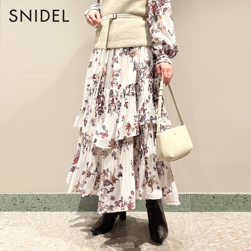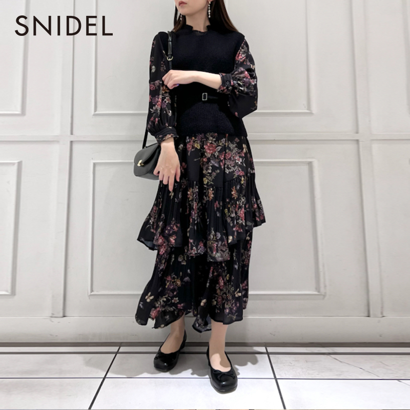 SNIDEL秋冬优雅系带针织背心印花连衣裙两件套SWNO235027