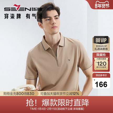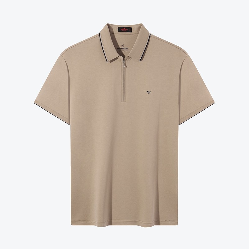 【5A抗菌2A防螨】柒牌半拉链polo衫男士夏季新品休闲百搭短袖T恤