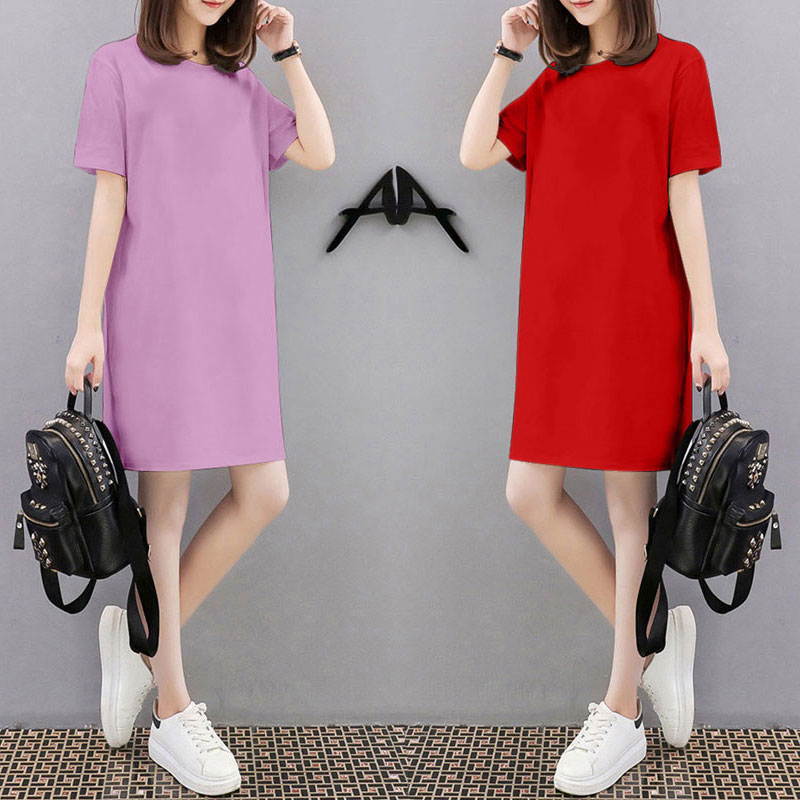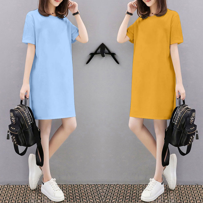 纯棉中长款短袖T恤女装2025年新款夏季薄款大码宽松体桖上衣裙子