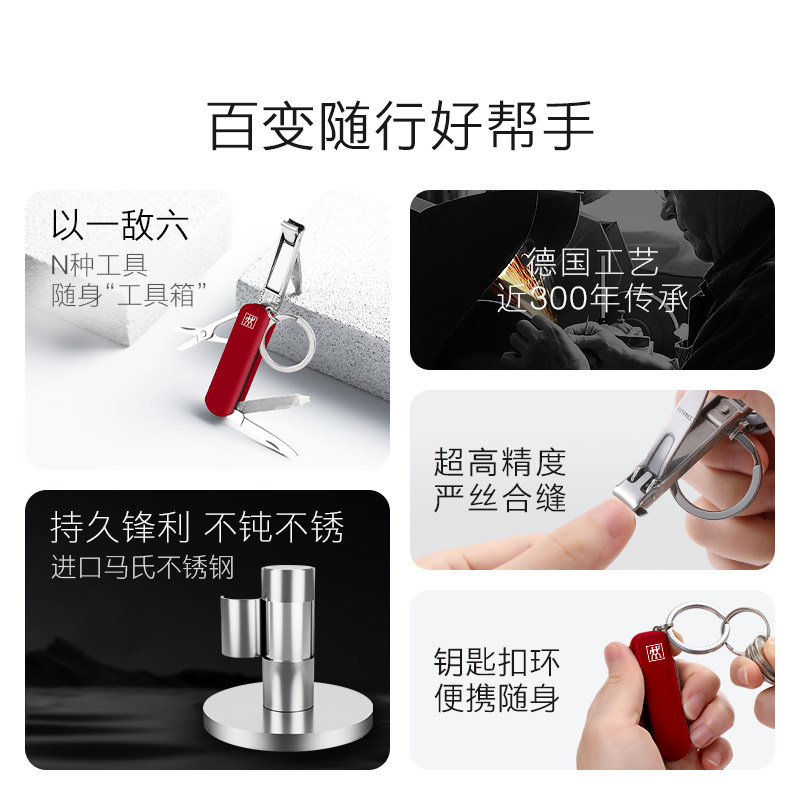 德国双立人多功能指甲刀折叠式迷你水果刀螺丝刀钥匙扣便携军刀